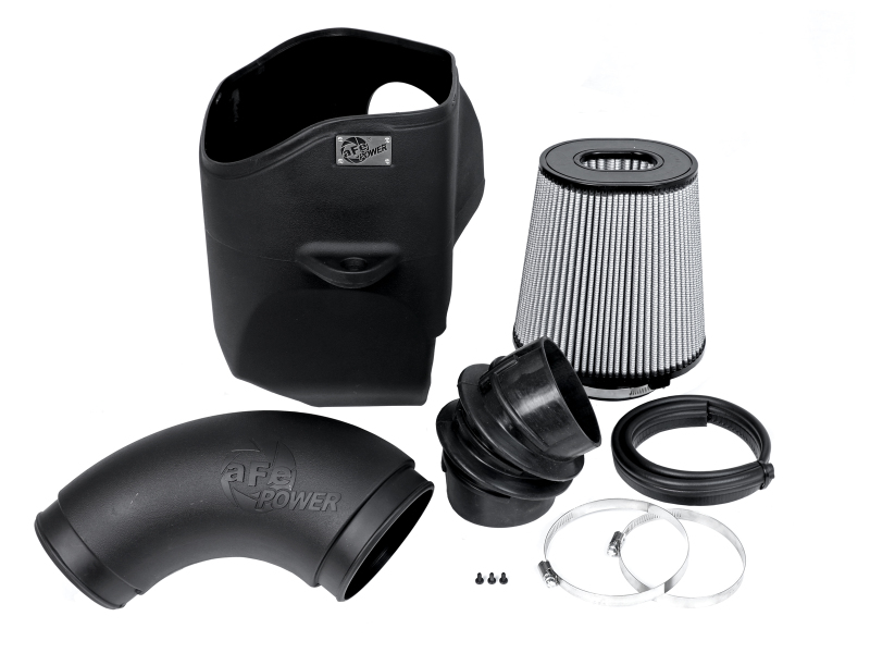 Large Three Layer Performance Air Filter: This 9 IN tall 360-degree radial flow air filter features a 5" flange and our oil-free Pro DRY S media with three layers of synthetic media for maximum convenience. Its progressive layering provides great filtration efficiency and dust holding capacity, while not requiring the use of oils. This media is best suited for street and light off-road use. Its inverted top makes for more filter surface area, resulting in longer service intervals.One-Piece Housing: The included massive air filter is surrounded by an open-element XLPE (cross-linked polyethylene) polymer housing that minimizes warm engine air for maximum performance. Its open design allows for easy viewing of the air filter, yet creates a heat-blocking seal when the vehicle's hood is closed. It utilizes the vehicle's OE air inlet with no additional hardware.Dyno-Tuned Intake Tube: This system features a high quality, computer-designed, dyno-tuned intake tube to achieve maximum power gains while maintaining a perfect fit. Its XLPE material is heat soak resistant and extremely durable. A custom, high-temperature silicone bellows coupling mates the tube directly to the vehicle's turbo.Hassle-Free Installation: This is a direct fit intake system that utilizes factory mounting points and requires no cutting or modifications. All necessary clamps, couplings, and hardware are included. Its revolutionary design, featuring our patent pending filter-to-housing interface, uses half the number of parts of a traditional cold air intake system.