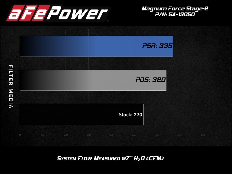 This 360-degree radial flow air filter features a 3.5" flange and our oil-free Pro DRY S media with three layers of synthetic media for maximum convenience. Its progressive layering provides great filtration efficiency and dust holding capacity, while not requiring the use of oils. This media is best suited for street use. Its inverted top makes for more filter surface area, resulting in longer service intervals. This system features a high quality, computer-designed, dyno-tuned intake tube to achieve maximum power gains while maintaining a perfect fit. Its XLPE material is heat soak resistant and extremely durable. It features an aFe Power design inspired by European vehicles. The included massive air filter is surrounded by an open-element XLPE (cross-linked polyethylene) polymer housing that minimizes warm engine air for maximum performance. Its open design allows for easy viewing of the air filter and delivers an aggressive Air Intake sound. It’s design incorporates the OEM air scoop to ensure that it gets the coldest air available. This is a direct fit intake system that utilizes factory mounting points and requires no cutting or modifications. All necessary clamps, couplings, and hardware are included. Its revolutionary design, featuring our unique filter-to-housing interface, uses half the number of parts of a traditional cold air intake system. Included billet aluminum fittings allows stock connections to transfer over seamlessly.