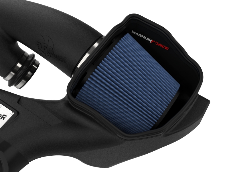 This 9” tall 360-degree radial flow air filter features a 5-1/2" flange and our pre-oiled Pro 5R media with five layers of progressively finer cotton gauze media for maximum performance. It provides your engine with the largest amount of high-flowing air and delivers the highest power gains in most cases. This media is perfect for street and/or track use. Its inverted top makes for more filter surface area, resulting in longer service intervals. The included massive air filter is surrounded by an open-element XLPE (cross-linked polyethylene) polymer housing that minimizes warm engine air for maximum performance. Its open design allows for easy viewing of the air filter and delivers an aggressive Air Intake sound. It utilizes the vehicle's OE air inlet with no additional hardware. The built-in air intake scoop captures cold air directly from the top of the radiator support thanks to its huge opening. This system features a high quality, computer-designed, dyno-tuned intake tube to achieve maximum power gains while maintaining a perfect fit. Its XLPE material is heat soak resistant and extremely durable. The computer designed system utilizes factory mounting locations, minimizing the use of unnecessary hardware, and ensuring a perfect fit every time. Its innovative design makes for a hassle-free, direct bolt-on installation process that requires no cutting or drilling. Stainless-steel clamps are included for strength, and premium silicone couplings allow for ample flexibility. Magnum Force intakes are designed with fewer parts for a fast and easy installation.