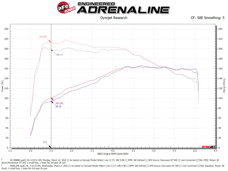 This aFe POWER Pro DRY S air filter is a 7-1/2” tall, oil-free, 360-degree conical flow performance air filter with three layers of synthetic media for maximum convenience. Its progressive layering provides great filtration efficiency and dust holding capacity, while not requiring the use of oils. This media is best suited for street and light off-road use. The sealed XLPE polymer housing features a sleek design, as well as a clear sight window, allowing for hassle-free filter inspection. aFe POWER's patent pending filter-to-housing interface eliminates the use of an overabundance of parts, further simplifying the installation process. The housing utilizes the factory air inlet, using no additional hardware, and features an optional auxiliary air inlet that pulls in additional air. This system features a high quality, computer-designed, dyno-tuned intake tube to receive the factory mass airflow cartridge and achieve maximum power gains while maintaining a perfect fit. The XLPE material is heat soak resistant and extremely durable. A silicone coupling at the turbo inlet allows for flexibility while maintaining durability and a perfect fit. The computer designed system utilizes factory mounting locations, minimizing the use of unnecessary hardware and ensuring a perfect fit every time. Its innovative design makes for a hassle-free, direct bolt-on installation process that requires no cutting or drilling. Its revolutionary design, featuring our patent pending filter-to-housing interface, uses half the number of parts of a traditional cold air intake system.