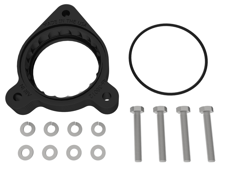 The serrated/helix design creates air turbulence in the intake manifold. This turbulence increases the air pressure in the combustion chamber, resulting in increased performance and improved throttle response. The serrated/helix combination design also reduces intake whistle that occurs with helix-only designs (US PAT 07055513). This Silver Bullet throttle body spacer is precision machined from 6061-T6 billet aluminum for lightweight, high strength, and perfect fit and finish. It features a black anodized finish. This Silver Bullet throttle body spacer uses all factory mounting locations, making for a hassle-free installation. A supplied gasket provides a perfect seal.