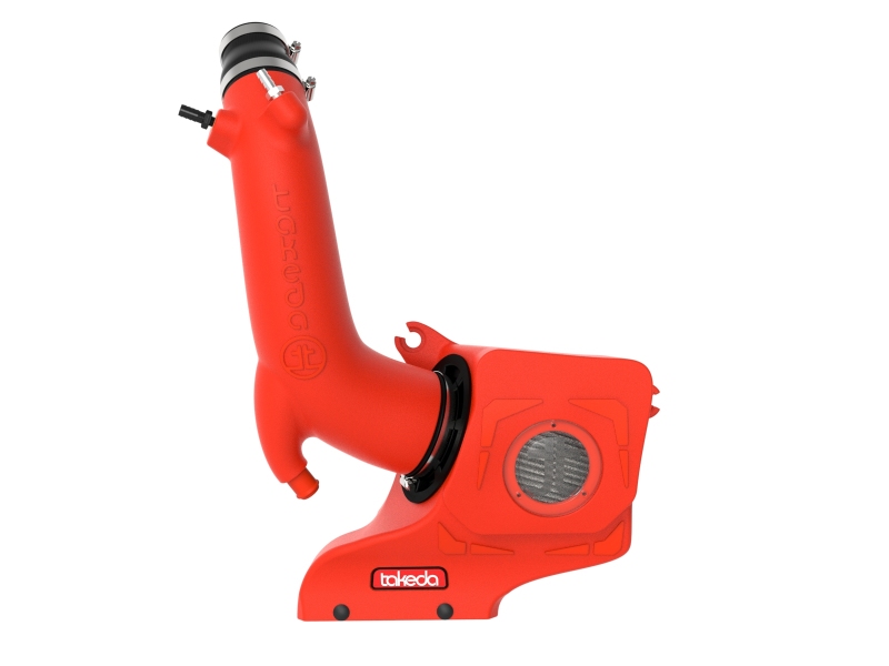 Momentum’s unique filter-to-housing interface was built to feature the largest air filter possible. This 7-1/2” tall 360-degree radial flow air filter features a 4” flange and our oil-free Pro DRY S media with three layers of synthetic media for maximum convenience. Its progressive layering provides great filtration efficiency and dust holding capacity, while not requiring the use of oils. This RED polyethylene media is best suited for street use. Its inverted top makes for more filter surface area, resulting in longer service intervals. The one-piece sealed housing, constructed of heat-resistance red cross-linked polyethylene (XLPE), features our patent-pending filter-to-housing interface. Its innovative design minimizes the total number of parts, making for an easy and fast installation. A large, clear sight window allows for a hassle-free filter inspection, without having to disassemble your system. Its auxiliary air inlet can be used to bring in additional air from the engine compartment or can be closed with an included plug. This system features a high quality, computer-designed, dyno-tuned intake tube to achieve maximum power gains while maintaining a perfect fit. Its red XLPE material is heat soaked resistant and extremely durable. It features a Takeda design inspired by import vehicles. Stainless-steel clamps and reinforced silicone couplings are included for strength and durability. Momentum intakes are designed with fewer parts for a fast and easy installation. Included billet aluminum fittings allow stock connections to transfer over seamlessly.