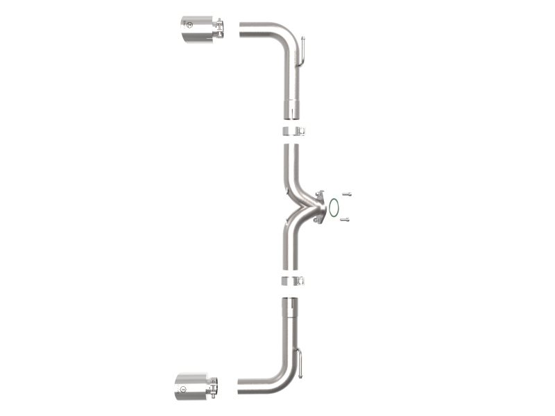 This axle-back exhaust system is constructed of 2-1/2 IN mandrel-bent 304 stainless steel tubing for…