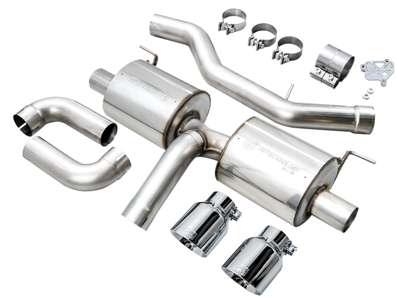 Beginning after the secondary catalyst, the AWE Track Edition picks up right before the rear axle an…