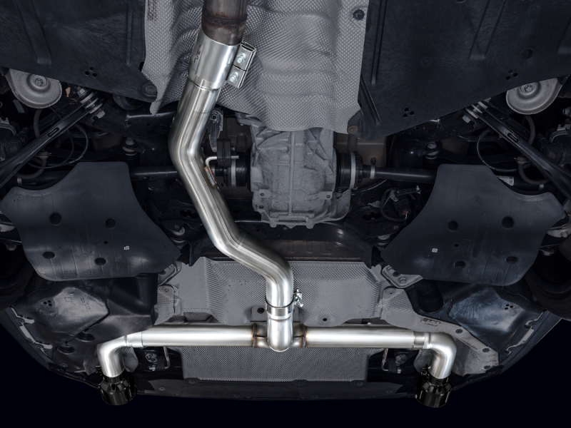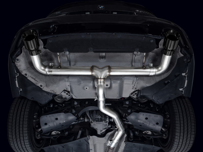 Beginning after the secondary catalyst, the AWE Track Edition picks up right before the rear axle and provides a full single 3” route from this point, then splits to dual 3” tip outlets. The Track Edition has absolutely zero filter -- making its sole purpose to increase the volume out of the B48 engine while remaining completely 50-state emissions compliant (and saving weight and dollars along the way). A simple cut (at the factory cut point) is all it takes, and the Track Edition goes into place via four bolt-on locations. AWE includes a factory clamp for the cut point that allows drivers to easily swap back to their stock rear section if ever needed. Here’s some helpful guidance if you’re deciding between kits: Due to the structural differences between the 330i and 430i, we are recommending the following per application: for the 330i, with all factory emissions equipment in place, the Track Edition is recommended for those wanting an elevated exhaust experience from within the cabin. If you plan to upgrade anything further upstream on a 330i, consider the Touring Edition - if you go Touring Edition on your 330i without any upstream modifications, it will resemble the stock sound in the cabin. On the 430i, interior acoustics (since it’s a coupe) differ when compared to its sedan sibling -- aka it’s louder inside. So, for you 430i drivers, we are recommending the Touring Edition, as the sound is much more pronounced in the cabin on the 430i. The Track Edition on the 430i is a bit rowdy. TLDR: 330i go Track Edition, 430i go Touring Edition!