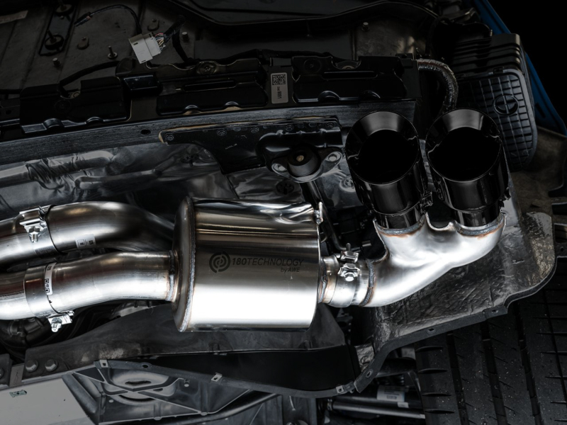 Presenting the Best Sounding Exhausts on the Planet™ for the C8 Corvette: At the intersection of sophistication and aggression lies the Touring Edition Exhaust. A dual 3” T304L stainless steel cat-back configuration, the AWE Touring Edition Exhaust is the perfect dose of steel for drivers looking for straight-pipe performance without sacrificing perfect daily drivability: a deep, sophisticated, exotic exhaust note with zero drone at highway speeds -- and V4 mode! Thanks to the asymmetric design, the number of necessary bends is minimized, thus removing the unwanted restriction in flow while facilitating impressive gains across the entire powerband. Paired with robust internally-lined stainless steel flex sections upstream, engine movement is significantly isolated, enabling life-long durability for peace of mind. Going the asymmetric approach also allowed us the opportunity of creating a bespoke cross-over section with entries from both the top and the bottom. Doing this we're able to achieve a rich and aggressive exhaust note out of the LT2 whether it be at idle, rev, or WOT. Beyond the unique crossover, the Touring Edition brings up the rear in proper fashion by featuring AWE’s patented drone-canceling solution, 180 Technology®, which targets and omits drone-prone frequencies while defeating the dreaded in-cabin tone change when switching between V4 and V8 modes. What’s this mean for you? You’ll be tuned into a pure, full-bodied LT2 soundtrack unlike any other without sacrificing in-cabin refinement, all while saving 31 lbs over stock. As a finishing touch, the included aluminum heat shield bolts to the bumper (via factory mounting locations) and resides neatly behind the exhaust, out of sight, with only an AWE logo showing through the rear mesh to let everyone know what team you're on. Why’d we go with an aluminum solution versus a heat blanket? Heat blankets are susceptible to waterlogging and material breakdown over extended periods of time.