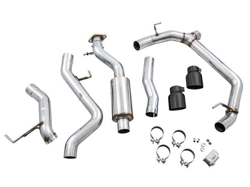 Handcrafted from US-made 3” T304L stainless steel, the 0FG Exhaust is a straight-through Cat Back configuration applicable to all Bronco models – 2.3T, 2.7TT, 2-door and 4-door – with modular capabilities unlike anything on the planet. The 0FG Exhaust features a bespoke AWE resonator in the mid pipe to produce an appropriate dose of aggression, followed by smooth bends towards the rear of the Bronco. On the way to the rear, depending on how many doors there are on your Bronco, lies an included adapter to bridge the difference in length across models. 2-door owner simply won't need these adapters, but 4-door owners will be thrilled. The 0FG modularity shines at the final breakpoint in the exhaust route. Not only does the 0FG accommodate various tip options, it also accommodates AWE’s BashGuard™. What’s BashGuard? Thanks for asking. The AWE BashGuard™ is included in every 0FG exhaust, and enables the 0FG to be the one exhaust to rule them all. Thanks to the modularity in the rear, simply remove the rear axle-back portion of the 0FG and replace it with the high-tuck BashGuard™. BashGuard™ is appropriately equipped with a .125” thick reinforced stainless ring. Perfect for bashin’. The Bronco Exhaust version you're checking out now is the Dual Split Rear Exit -- dual 4.5” double-walled, slash-cut Diamond Black tips exiting below the rear bumper. This configuration adds needed symmetry to the Bronco’s very asymmetrical bumper, and it was engineered with aftermarket bumpers in mind. And remember, every kit comes with the AWE BashGuard™.One exhaust. Every terrain. AWE's No CEL Guarantee, Perfect Fitment Guarantee, and Lifetime Warranty come standard.