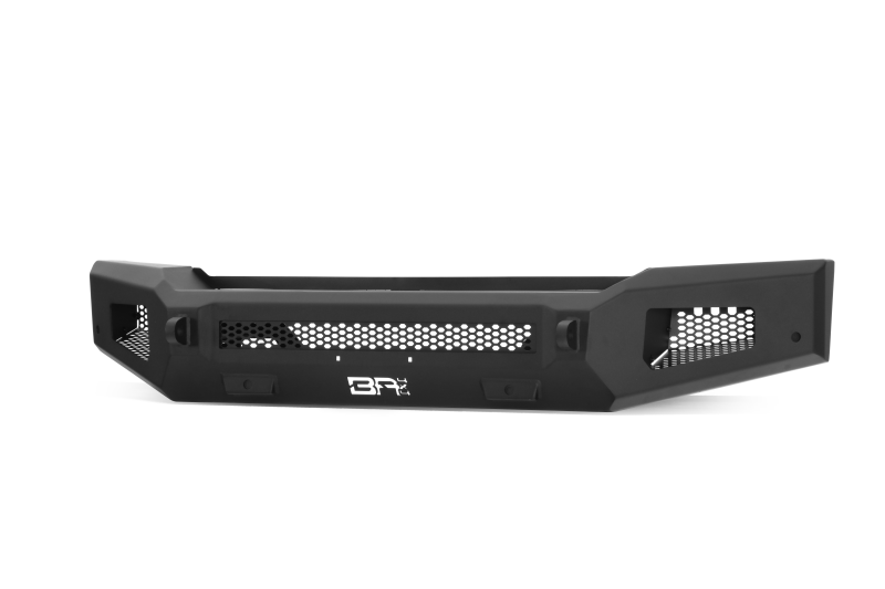 Introducing our premium front bumper, meticulously crafted from 3/16" and 1/4" cold roll steel for exceptional strength and durability. Designed for easy bolt-on installation, this bumper is OE sensor compatible, ensuring seamless integration with your vehicle's existing systems. It features two welded D-ring mounts for reliable recovery operations and is non-winch compatible, making it perfect for those who don't require winch functionality. The bumper is finished with a two-stage light texture in black, offering both style and long-lasting protection. For diesel engines, an intercooler shroud is required, while it remains optional for gas engines (PN: GM-5966). Light fitment options include a 30" dual row LED bar and 2 cube LEDs, providing excellent visibility during nighttime adventures. Ideal for off-road enthusiasts and heavy-duty users, this bumper is built to withstand the toughest conditions while providing a sleek and practical design.