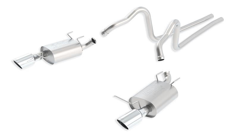 Features bright chrome on T-304 stainless steel tips. Borla(r) has developed a revolutionary exhaust technology that enables their engineers to deliver unprecedented vehicle-specific control over the acoustical note of an exhaust throughout the RPM range, while retaining 100% of the power-adding capabilities of Borla(r)'s patented Multicore design. Called ATAK(r) (Acoustically-Tuned Applied Kinetics), this exclusive technology (U.S. patent #5,248,859) produces the highest available dB (decibel) levels in the Borla(r) street-legal lineup, and is designed for high-performance purists who prefer exhaust notes over their stereos. The focus of ATAK(r) is to pump the volume while retaining clarity of sound, at the same time avoiding the drone and distortion typically found in louder exhausts. With ATAK(r), the sound output is tuned like a graphic equalizer to shape and focus sound waves for optimum high-volume output. The development of each ATAK(r) system begins with extensive study of each vehicle's acoustical properties. The technology is based on custom-tuned attributes of the internal muffler cores, which are calibrated on a vehicle-by-vehicle basis to deliver the most desirable sound. Borla(r) has Cat-Back(tm) and/or Axle-Back ATAK(r) exhaust systems for a wide variety of popular applications such as Mustang GT, Camaro, Corvette, Challenger, GTR, and more in development. Like all Borla(r) exhaust products, each system is handmade in the USA by master craftspeople and features premium T-304 austenitic stainless steel construction, mandrel bending by computer-controlled CNC machinery to ensure maximum flow and a perfect fit, mirror-polished tips, and a Million-Mile Warranty. For more information about Borla(r) products, visit ww.Borla(r)com. Or call toll free 1-877-GO Borla(r)