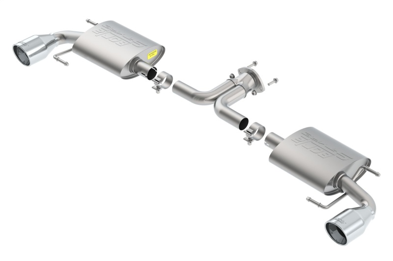 System features polished T-304 stainless steel tips. Borla(r) Cat-Back(tm) & Axle-back exhaust systems feature patented straight-through and multi-core technology designed to unleash hidden horsepower. Increased exhaust velocity adds power, driving excitement, fuel economy, and the distinctive Borla(r) Sound of Power respected by motoring enthusiasts everywhere. Each system is built from premium T-304 stainless steel, superior to T-400 series knockoffs (such as 409), to give you the absolute best in performance and durability. Ultra-smooth mandrel bends ensure maximum flow & power, and precision computer-controlled CNC manufacturing ensures an accurate fit. Best of all, Borla(r) stands behind every system with a Million-Mile Warranty. Just what you'd expect from the world's most experienced (and most winning) exhaust brand.