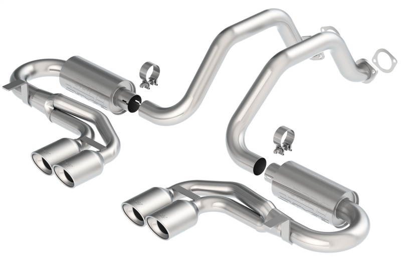 S-Type Classic sound. Borla(r) Performance has once again proven why we've have led the aftermarket performance exhaust industry for over 40 years. Borla(r) has an exalted heritage with Chevrolet performance vehicles. From the C5R LeMans winning Corvettes to privateers like KTEC, Pratt-Miller, Lingenfelter and Lou Gigliotti who have enhanced Borla(r)'s knowledge of both the vehicle dynamics and the power-plant engineering. The C5 is a muscle car with a big powerful engine on a sophisticated, sexy chassis. Borla(r) has always used the transfer of technology from racing to the street as a tool, and the C5, and C5 Z06 play right into that wheelhouse. With an experienced R&D staff, the Borla(r) team has given the C5 the attention it deserves by rolling out several new systems for the Corvette. Airflow management and exhaust engineering is a science with which Borla(r) has more experience than anyone in the exhaust aftermarket. Borla(r) offers a variety of options for the C5, and C5 Z06. Choose from several tip styles and muffler designs. Cat-Back(tm) and Axle-Backs are available with either the highly popular S-Type muffler or the Touring muffler. The S-Type has a more aggressive sound. For those who prefer it on the milder side, we have the Touring muffler with a less aggressive sound. Both sound level system options feature polished T-304 stainless steel tips. Borla(r) Performance Industries, the original pioneers of premium, high quality T-304 austenitic stainless steel (superior to 409 or aluminized steel) free-flow exhaust utilizes patented award and race winning technology to deliver quality, sound, performance gains and enhanced fuel economy all with an easy bolt-on installation. Best of all, Borla(r) street products carry an unsurpassed written million-mile warranty.