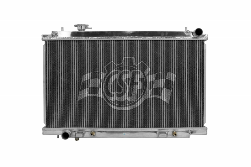 CSF has over 5 decades of experience manufacturing radiators. So when it comes to keeping your engine cool and your 350Z running at its best, a CSF High-Performance All-Aluminum Radiator is the obvious choice. Designed to perform on the street or at the track, a performance radiator is a must-have for both high horsepower builds as well as race vehicles which need added cooling performance in motorsports environments. This radiator features a 2-Row core with CSF's exclusive B-Tube Technology: Unlike a regular oval shape "O" type radiator tube, CSF uses a specially engineered tube in the shape of a "B". These "B-tubes" are carefully formed and then brazed over the seam to seal. CSF is able to use thinner and lighter aluminum material (with better cooling efficiency) because this design is actually stronger than normal "O" shape tubes that are welded. The design (inlet in the middle of the tube that is seam brazed) increases the heat transfer surface area of the tubes by approximately 15% over regular tubes - producing the efficiency of two smaller tubes vs. one large tube within the same space criteria. With "B-tubes" you are able to get "dual liquid laminar flow". CSF also uses ultra efficient multi louvered fins that are carefully and precisely aligned to maximize airflow through each radiator core. Fin specifications are carefully measured and calculated for each application, and tested for maximum heat rejection efficiency in our wind-tunnel lab.