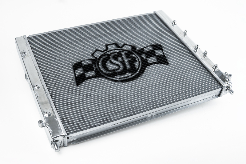 CSF has over 5 decades of experience manufacturing radiators. So when it comes to keeping your engine cool and your CTS-V running at its best, a CSF High-Performance All-Aluminum Radiator is the obvious choice. Designed to perform on the street or at the track, a performance radiator is a must-have for both high horsepower builds as well as race vehicles which need added cooling performance in motorsports environments. This radiator features a 2-Row core with CSF's exclusive B-Tube Technology: Unlike a regular oval shape "O" type radiator tube, CSF uses a specially engineered tube in the shape of a "B". These "B-tubes" are carefully formed and then brazed over the seam to seal. CSF is able to use thinner and lighter aluminum material (with better cooling efficiency) because this design is actually stronger than normal "O" shape tubes that are welded. The design (inlet in the middle of the tube that is seam brazed) increases the heat transfer surface area of the tubes by approximately 15% over regular tubes - producing the efficiency of two smaller tubes vs. one large tube within the same space criteria. With "B-tubes" you are able to get "dual liquid laminar flow". CSF also uses ultra efficient multi louvered fins that are carefully and precisely aligned to maximize airflow through each radiator core. Fin specifications are carefully measured and calculated for each application, and tested for maximum heat rejection efficiency in our wind-tunnel lab.