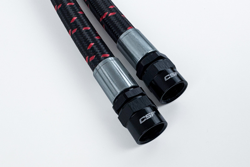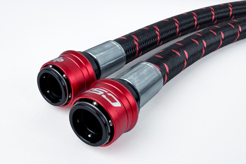 CSF partnered with DYME PSI for their exceptional quality and innovative quick-release hose and fitting solutions. The DYME Pro/Spec Quick Release Fittings offer race-proven performance with the convenience of tool-free clamshell removal and capable of withstanding up to 10,000 PSI. Quick Release fittings make the installation of the CSF kit much faster than traditional threaded fittings. In addition, they make maintenance like fluid changes much less of a headache. The hoses are a Superstrasse CPE lined stainless steel braided rubber hose for maximum flexibility, flow, and chemical resistance. The lines are ideal for motorsports use and more than capable of handling the rigors of off-roading.