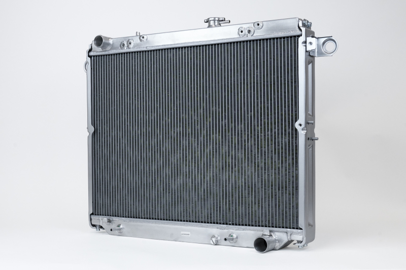 CSF has over 5 decades of experience manufacturing radiators. So when it comes to keeping your engine cool and your J100 LX470/Land Cruiser running at its best, a CSF High-Performance All-Aluminum Radiator is the obvious choice. Designed to perform on the street or at the track, a performance radiator is a must-have for both high horsepower builds as well as race vehicles which need added cooling performance in motorsports environments. This radiator features a 2-Row core with CSF's exclusive B-Tube Technology: Unlike a regular oval shape "O" type radiator tube, CSF uses a specially engineered tube in the shape of a "B". These "B-tubes" are carefully formed and then brazed over the seam to seal. CSF is able to use thinner and lighter aluminum material (with better cooling efficiency) because this design is actually stronger than normal "O" shape tubes that are welded. The design (inlet in the middle of the tube that is seam brazed) increases the heat transfer surface area of the tubes by approximately 15% over regular tubes - producing the efficiency of two smaller tubes vs. one large tube within the same space criteria. With "B-tubes" you are able to get "dual liquid laminar flow". CSF also uses ultra efficient multi louvered fins that are carefully and precisely aligned to maximize airflow through each radiator core. Fin specifications are carefully measured and calculated for each application, and tested for maximum heat rejection efficiency in our wind-tunnel lab.