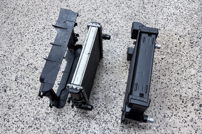 100% All-Aluminum construction ensures the best performance and durability. The integrated mounting frame is much stronger and more durable than the OE plastic pod mounting system. In addition, the black finish provides extra protection and corrosion resistance. CSF auxiliary radiators offer even more durability with the integrated bolt on rock guards to keep the coolers safe. You've no doubt heard horror stories about OEM coolers getting punctured and spilling fluids all over the road or track. Now you can feel more confident that your cooling system is safer from road debris.