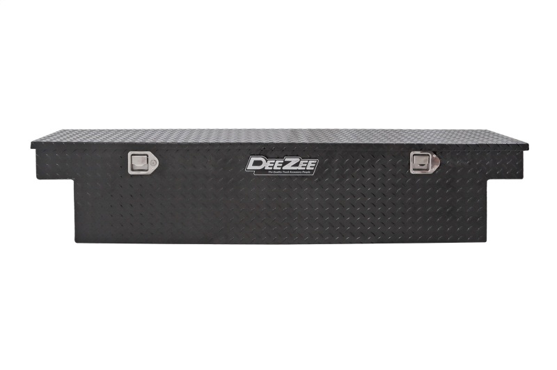 Dee Zee Tool Box - Specially Narrow Crossover box. Constructed of durable Brite-Tread aluminum with narrow design for subtle look. Black-Tread powder coat, provides a gloss black finish while it protects and prevents oxidation. Other features: lockable push-button handles, dampened gas shocks, closed cell foam gasket, and self-adjusting strikers. J-Bolt mounting hardware included. Ideal for todays short bed crew cab or any truck that doesnt want to lose valuable bed space.