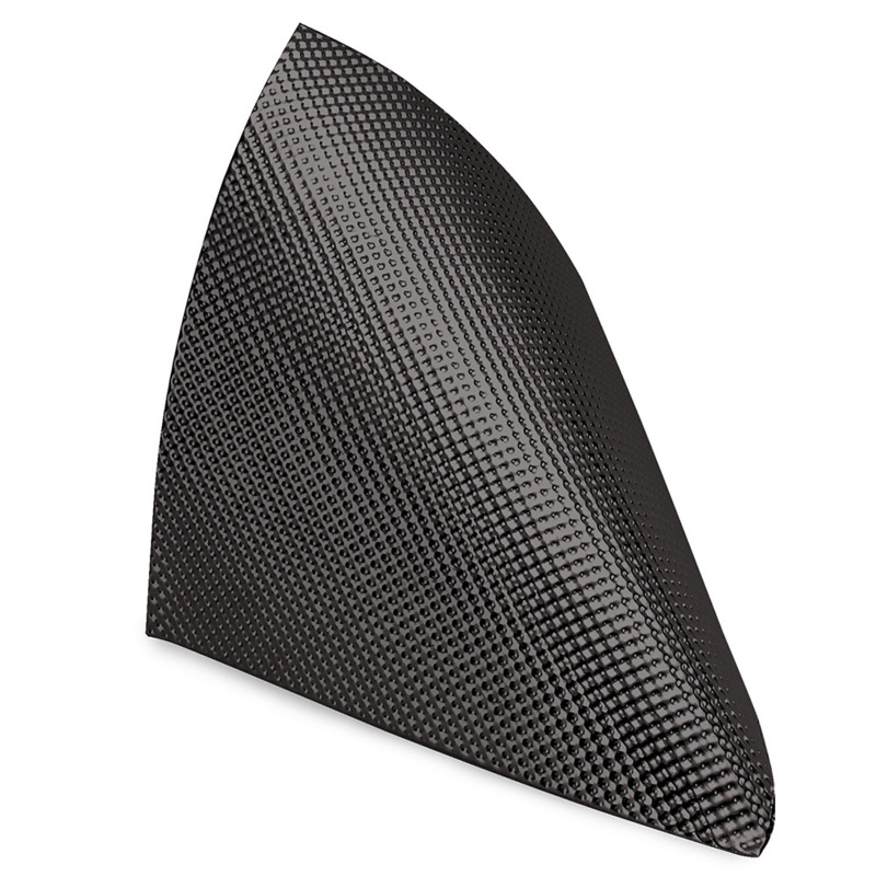 New Black Floor and Tunnel Shield solves the problem of blocking engine and exhaust heat while wanting a great, flexible, black finish. With a proprietary high temperature black coating, Black Floor and Tunnel Shield controls heat from getting into interiors and protects components from damage. Aggressive adhesive backing makes installation easy. Flexible - easily shapes to firewalls, trans tunnels, floors, and more. Constructed with an embossed 10 mil aluminum face bonded to 1/8 in. composite glass-fiber core and backed with a high temp super strong pressure sensitive backing, Floor and Tunnel Shield II withstands up to 1750F. The adhesive side holds past 450F. Proprietary high temperature black coating Wind and water will not affect adhesive Minimum clearance required, only 3/16 in. thick Easily shape, trim, peel and stick Aggressive self-adhesive backing DO NOT apply directly to exhaust components. Bending in a metal break or making sharp bends may crack the black coating. This will not change the performance of the product.