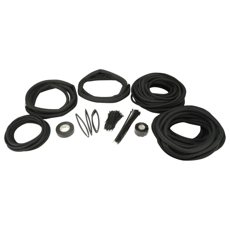 Everything to protect and restore your factory or aftermarket wire harness from abrasion, chemicals and the elements. 5 different diameter Easy Loom sleeves, Shrink tube ends, silicone tape, locking ties, electrical tape, and now includes a small and large line sleeving tool. Self-closing split design with 30% overlap Peak temp rating 347 F - Melting point 500 F Superior in style and function to plastic tubing Protects against abrasion, chemicals and the elements Professional look and added protection Approved by most car manufacturers Kit Includes: 1 - 1 in. x 6 ft Easy Loom 1 - 3/4 in. x 10 ft Easy Loom 1 - 1/2 in. x 30 ft Easy Loom 1 - 5/16 in. x 60 ft Easy Loom 1 - 3/16 in. x 15 ft Easy Loom 1 - 3/8 in. x 2 ft Heat Shrink 1 - 1/4 in. x 1 ft Heat Shrink 1 - 1/2 in. x 1 ft Heat Shrink 40 - 8 in. Ties 100 - 4 in. Ties 1 - 1 in. x 12 ft Silicone Tape 1 - Roll of Electrical Tape Newly added! - 1 large & 1 small line sleeving tool