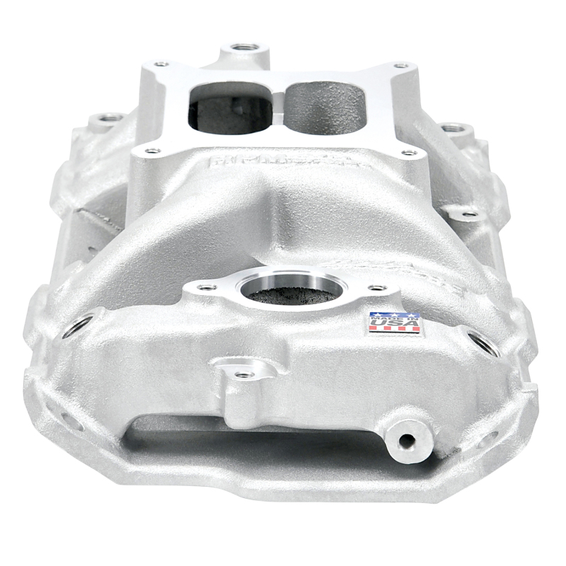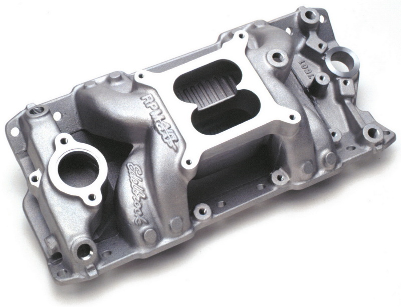 Edelbrock part #7501 RPM Air-Gap #7501 intake manifold is designed for 1955-86 262-400 c.i.d. Chevrolet V8 applications. The award-winning RPM Air-Gap intake manifold incorporates the same race-winning technology that's used on our Victor Series competition intakes. The air-gap design features an open air space that separates the runners from the hot engine oil resulting in a cooler, denser charge for more power.