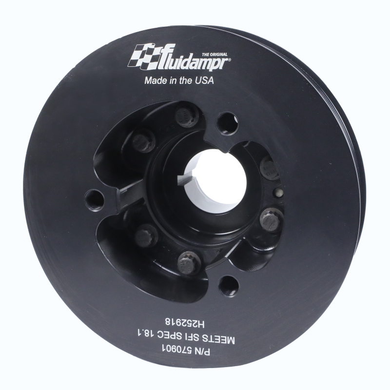 Protect your engine. Modifications can compromise your stock harmonic balancer. Install a Fluidampr performance damper early for best durability. Superior viscous damper design controls harmful torsional vibration across the entire rpm range. Reduce wear on engine components. Reduce risk of crankshaft failure. Improve timing. Unleash lost torque and horsepower. Precision CNC machined and balanced high-grade steel components. Corrosion resistant black zinc finish with engraved timing marks. No maintenance required. Trusted by leading engine builders worldwide. SFI 18.1 certified. Made in USA.