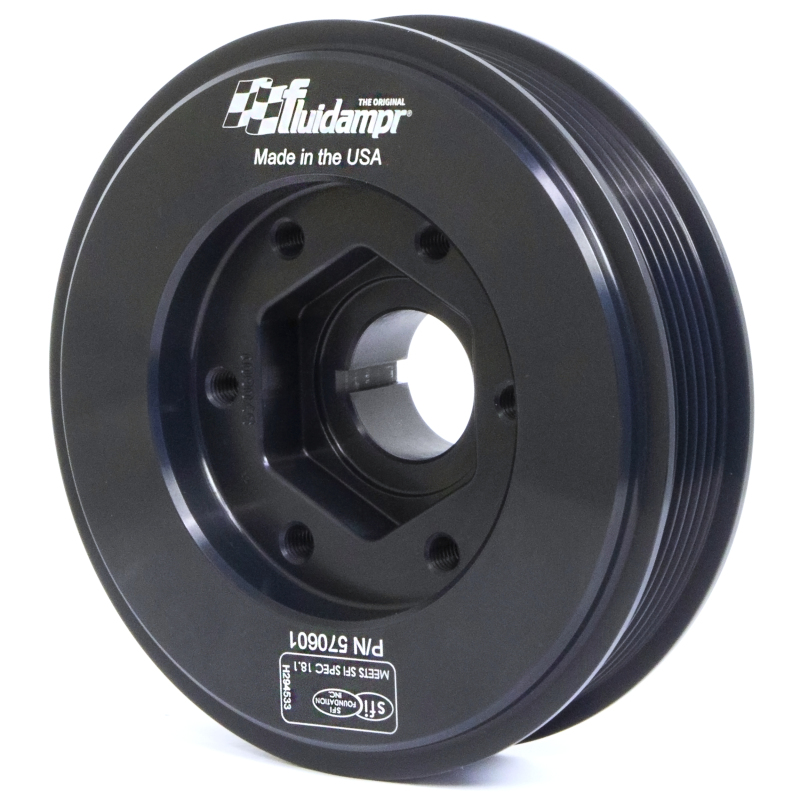 Protect your engine. Modifications can compromise your stock harmonic balancer. Install a Fluidampr performance damper early for best durability. Superior viscous damper design controls harmful torsional vibration across the entire rpm range. Reduce wear on engine components. Reduce risk of crankshaft failure. Improve timing. Unleash lost torque and horsepower. Precision CNC machined and balanced high-grade steel components. Corrosion resistant black zinc finish with engraved timing marks. No maintenance required. Trusted by leading engine builders worldwide. SFI 18.1 certified. Made in USA.