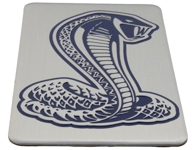 Ford Racing intake plaques are proudly made in the USA. These intake plaques finish your upper intake manifold with a highly embossed Ford Cobra in a blue inlay on a brushed aluminum background. Installation is easy with the included two-way tape. Make a statement under the hood of your Ford with their intake plaques.