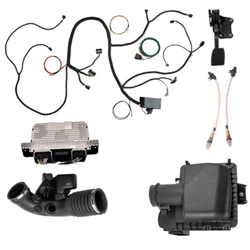 Take the complexity and mystery out of wiring a late model 5.0L 4V Ti-VCT engine! Replaces M-6017-A504VA Control Pack - includes wiring for Speed Dial M-4209ADPT-AC to pickup transmission output speed. Designed to run 2011-2014 5.0L 4V Coyote engines, M-6007-M50 and M-6007-A50NA 5.0L 4V Coyote crate engines with manual transmission. M-6007-A50SC, M-6007-A50XS, M-6007-M50B (BOSS 302) and F-150 truck engines require modifications. Includes PCM with Ford Performance calibration. Supercharged, M-6007-A50SC, M-6007-A50XS, M-6007-M50B (BOSS 302) and F-150 truck engines require custom calibration. Includes Electronic Throttle Control accelerator pedal, eliminating throttle cable routing problems. Unique control pack harness replaces stock body harness and is designed for custom vehicle builds. Features OBD-II diagnostic port to assist in vehicle calibration upload and problem diagnosis. Includes power distribution module, air box, air inlet tube, MAF sensor, upper and lower radiator hoses, PCV hoses and HEGO sensors. PCM with Ford Performance calibration requires return type fuel system, will not work with returnless fuel system. NOTE: Installation of this PCM in a 2011-2014 Mustang GT will result in a no-start condition.