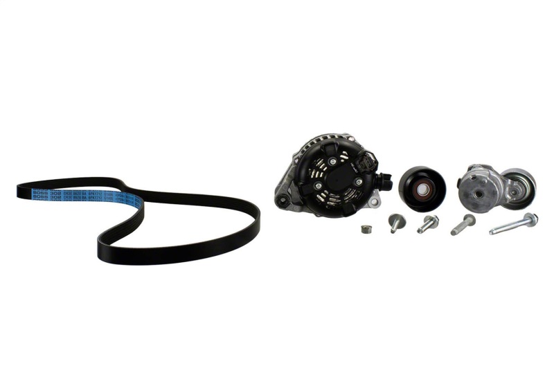 These Ford Racing 5.0L Modular Boss 302 alternator kits include special high performance components as used on the production 2012 Mustang Boss 302 and are designed to operate at much higher rpm. The alternator uses a one-way clutch to prevent belt hop-off during upshifts. The included tensioner has higher tension for better belt control, and the larger diameter pulley slows down the armature speed, reducing drag and parasitic HP loss.