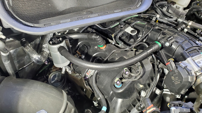 During the process of venting crankcase pressure back through your intake track, large amounts of oil, in the form of vapors can gather/accumulate in your intake tube, intake manifold runners and even dilute your gas, lowering its octane level. This happens on all engines and is even worse with forced inducted vehicles (supercharged and turbocharged) as crankcase pressures are increased. To combat this, we have developed an oil separator of our own design. Milled from solid billet aluminum this is a rock-solid piece. It has a knurled tank base for easy removal to drain the spent oil and an O-ring seal to prevent any leaks. Filtering consists of a fine mesh stainless steel screen that traps fine oil vapors and releases them once heavy enough to fall. They then pass through a 1/2" thick 1/16th" aluminum honeycomb filter where they grow every larger and then fall into the bottom. By the time the oil gets through the filter it's too heavy to be passed on into the intake. The tank holds 3 oz of fluid, while that may not sound like a lot, you shouldn’t see that much oil in your PCV system. Drain it every 2000-3000 miles and you will never come close to filling it.