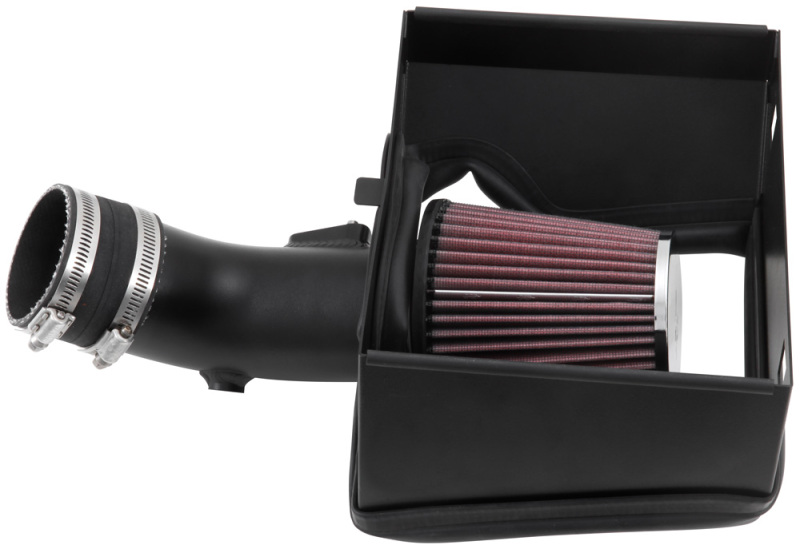 Gain a guaranteed increase in horsepower and torque with a K&N cold air intake system featuring a mandrel-bent aluminum intake tube. Each system is paired with a washable, reusable High-Flow Air Filter featuring oiled cotton filter media. The oversized, conical filter design allows you to go up to 100,000 miles between filter services under normal highway driving conditions. A custom heat shield or air box helps protect intake air from the high temperature of your engine bay, and the entire system can typically be installed in less than 90 minutes. Some intakes are not legal for sale or use on any pollution controlled motor vehicle in California. See the product specifications for CARB status on each part for a specific vehicle.