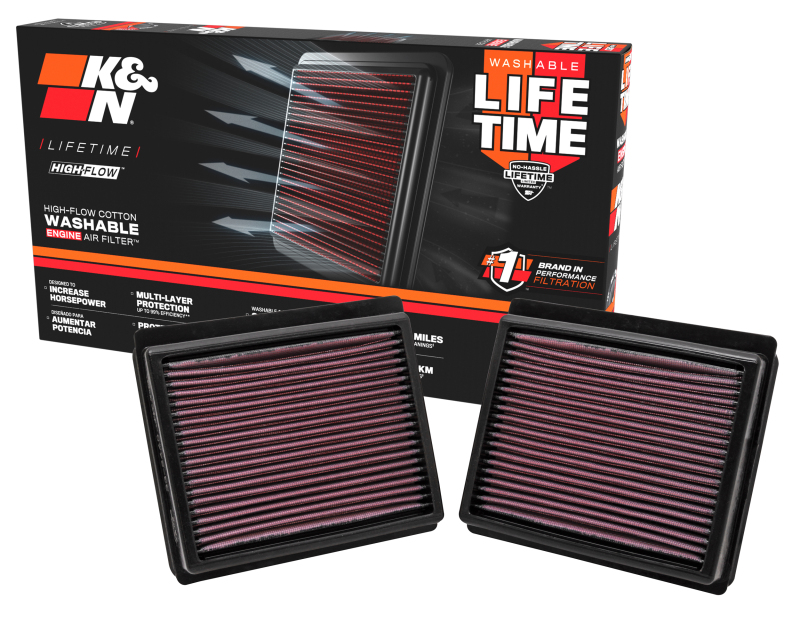 K&N washable, reusable High-Flow Air Filters feature a state-of-the-art design of layered, oiled cotton media engineered to improve airflow and capture contaminants, and are designed to provide an increase in horsepower. Each performance air filter is reusable, engineered to last for the entire lifespan of your vehicle, and backed by K&N's 10-Year/Million Mile Limited Warranty. K&N drop-in replacement filters are designed to install easily into your factory air box. Upgrade today and start enjoying superior airflow and superior performance from K&N's most popular product!
