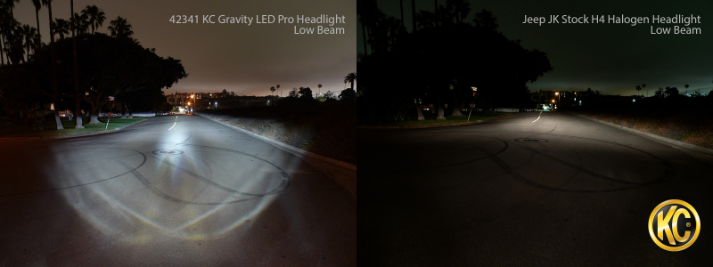 FEATURES-Patented Gravity Projector Optics (GPO)-DOT Compliant High/Low Beams with Day Running Light Support(Standard in Canada Spec 07-18 Jeep JK)-Hard Coated Polycarbonate Lens-Precision Die-Cast Aluminum Housing-Plug-n-Play for 07-18 Jeep JK/JKU With Factory Halogen HeadlightsLIGHT PERFORMANCE-Raw Lumens: Low- 2,967 lm, High- 2,575 lm, DRL- 386 lm-Lux @ 10 Meters: Low- 400 lx, High- 700 lx?-Candela: Low- 40,000 cd, High- 70,000 cd-Beam Distance: Low- 400m, High- 529mSPECIFICATIONS-Wattage: Low- 18W, High- 25W, DRL- 1.35W-LED Bulb: CREE: XP HI/XPG2-Color Temp: 5000K-Amp Draw: 1.88A-Voltage: 9V-18V-IP Rating: IP68-Product Dimensions: W - 6.96" x D - 5.098" GRAVITY LED EXTREME OUTPUT AND EFFICIENCYThe Gravity LED Pro 7" headlight uses KC's newly patented Gravity Projector Optic (GPO). Utilizing this proprietary projector lens technology along with a GRD LED core, KC engineers were able to deliver a more controlled beam pattern while setting new industry standards in light shape, clarity and output.HIGH-PERFORMANCE LED OPTICSThe Gravity LED Pro 7" Headlight features KC's patented Gravity GPO & GRD technology, which is engineered to direct every lumen from the LEDs to the reflector optics.HIGH/LOW/DRL FUNCTIONSHigh/Low beams with DRL functionality comes standard in this KC LED projector headlight greatly improving visibility and clarity over factory 07-18 Jeep JK halogen headlights.DESIGNED FOR DURABILITYSurrounding our high-performance Pro 7" Headlight is a durable die-cast housing and a hard coated Polycarbonate lens, designed to withstand the harshest climates, terrains and driving conditions.