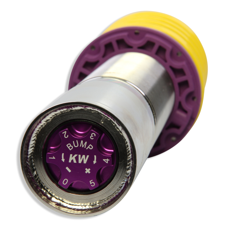 Cutting-edge motorsports technology for more performance on the road. Like every suspension product developed by KW automotive, the suspension manufacturer, and manufactured in Germany, the KW V3 Coilover suspension kit also provides a significant plus in safety reserves in road traffic. Thanks to the chassis with its high-quality dampers, springs, and elastomer spring elements, pitching and rolling movements during load changes such as evasive maneuvers, cornering, acceleration, and braking are significantly reduced. The braking distances are also shortened. Thanks to improved support and feedback, drivers not only feel safer but driving in everyday life becomes even safer. With compression and rebound stage damping, that can be set separately and independently of each other, the damper setup can be customized to your personal driving preferences or vehicle changes such as weight, tire characteristics, or altered vehicle rigidity. True performance optimization is only possible with this unique, patented system. For example, this allows the compression damping force to be increased and get more grip from the tires, to improve cornering behavior and reduce squat without simultaneously altering the rebound stage damping which is optimally matched to the spring rate, a scenario which results in reduced grip and the associated loss of performance. The KW V3 coilover kit is the ideal tool for performance-oriented drivers and experienced tuning enthusiasts who place a strong emphasis on the overall performance of their suspension. The Variant 3 features patented TVR-A and TVC-A technology that provides separately adjustable rebound and compression damping. The extensive adjustment range of the independently configurable rebound and compression make it easy to directly influence the steering behavior, directional stability, grip and handling characteristics for confident and repeatable results at the limit of driving dynamics.