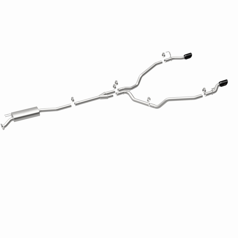 The MagnaFlow Honda Ridgeline NEO Series Cat-Back Performance Exhaust System #19633 adds a healthy serving of dyno-proven performance and a modern, aggressive exhaust note to your 2021-2024 Honda Ridgeline equipped with the 3.5L engine option. This exhaust kit is designed to replace all OEM exhaust components from near the catalytic converter on back. Bystanders will know something is up when your truck pulls away from the rest of the vehicles at each stoplight with a quick launch and a triumphant roar, leaving everyone else in its wake. This increase in performance is made possible by the redesigned exhaust, which features 2.5” mandrel bent main piping that passes through an 18” oval straight through muffler before smoothly transitioning via a Y-pipe to a single-to-dual split rear exit with 4” double wall, angle-cut and logo etched tips finished in black chrome. #19633 is made of durable, corrosion resistant stainless steel and produced using advanced CNC precision robotic manufacturing techniques for an OEM-like, easy to install direct-fit design. MagnaFlow stands by this Honda Ridgeline performance exhaust with our limited lifetime construction warranty.