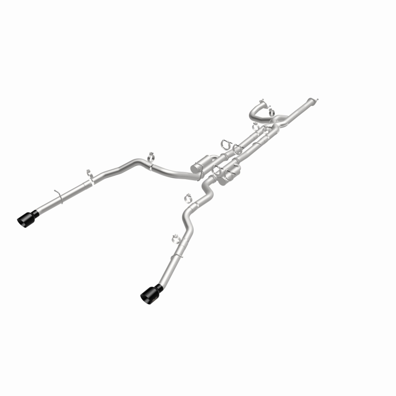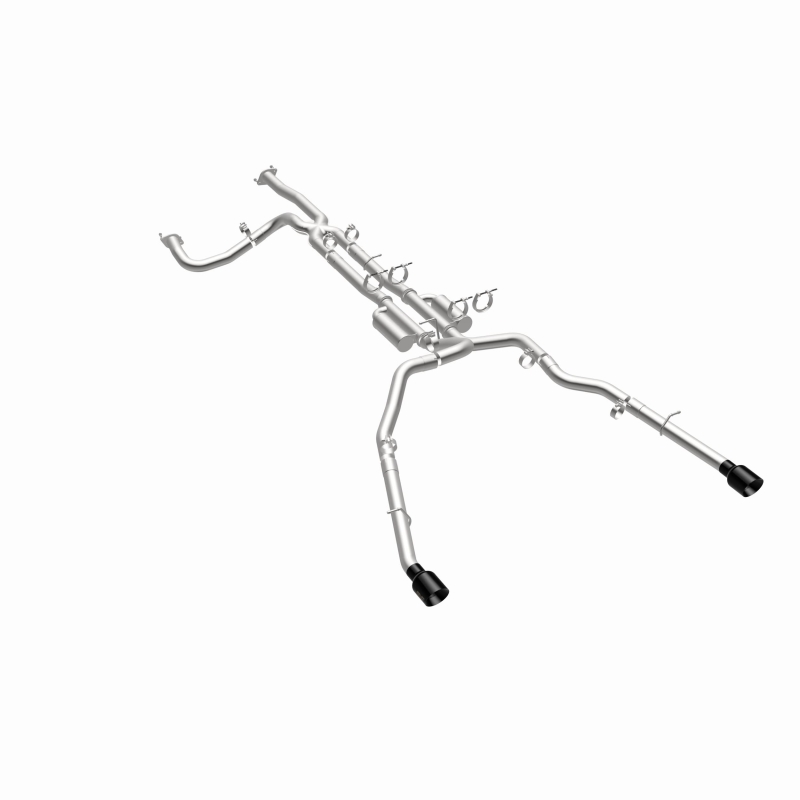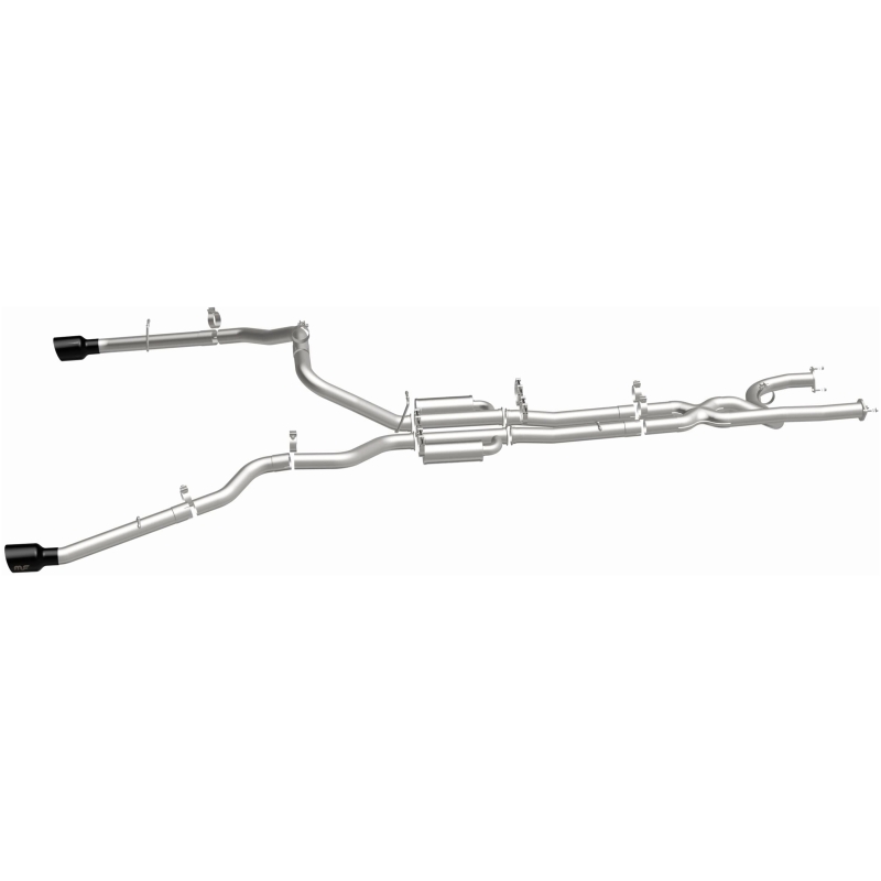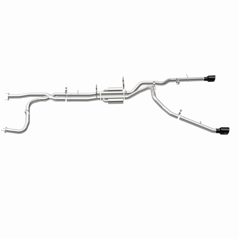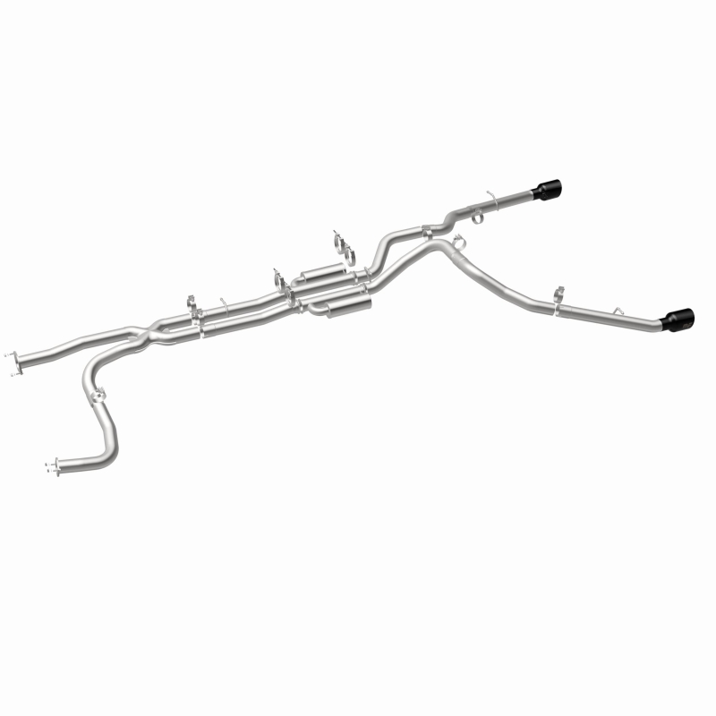 The MagnaFlow RAM TRX SPEQ Series Cat-Back Performance Exhaust System 19705 brings out the personality of your truck with our signature resonant, powerful exhaust tone and dyno-proven performance. #19705 3” diameter mandrel bent main piping passes through a No Drone Technology (NDT) chamber before exiting in a dual split rear exit with 5” black chrome tips. This full-size truck exhaust kit is the perfect equalizer between sound and performance. Upgrade your truck to the next level with an exhaust that has the pipes to put other trucks to shame. With this system your truck will produce moderate exterior and mild interior sound levels while leaving other trucks feeling envious at every stoplight. Exhaust kit 19705 features a cat-back exhaust layout that replaces your trucks’ stock exhaust components from near the catalytic converter on back. Extensive 3D scanning during development has resulted in a direct-fit design that you can easily install yourself. 19705 is produced using CNC precision robotic manufacturing techniques and is backed by MagnaFlow's 1-year limited finish warranty and limited lifetime construction warranty.