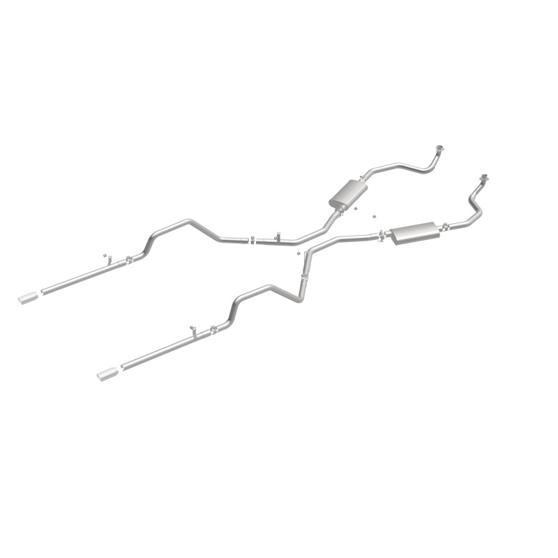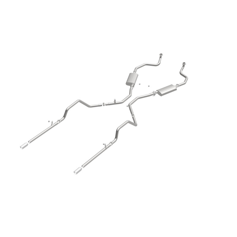 The MagnaFlow 1961-1964 Chevrolet Impala Street Series Crossmember-Back Performance Exhaust System 16724 brings enhanced engine sound and dyno-proven performance to your 3.8L, 4.6L, 5.3L, 5.4L, 5.7L, 6.7L, 7.0L 1961-1964 Chevrolet Impala with a healthy helping of our deep, resonant signature exhaust note at Moderate exterior and Mild interior sound levels. Thanks to its durable, corrosion resistant stainless steel design, this Chevrolet Impala exhaust system will handle whatever tarmac you decide to leave your mark on. This performance exhaust kit features a crossmember-back layout designed to replace your Chevrolet Impala's exhaust system from the crossmember on back. With its fast-flowing, mandrel bent 2.5in. main piping and 2 Straight-Through mufflers ending in a Dual Split Rear exit with 3in. Polished Welded-On Single Wall Angle Cut Rolled Edge tips, your muscle car will be sounding as awesome as it looks. Extensive 3D scanning during development has resulted in a direct-fit design that you can easily install yourself. 16724 is produced using CNC precision robotic manufacturing techniques and is backed by MagnaFlow's limited lifetime construction warranty.