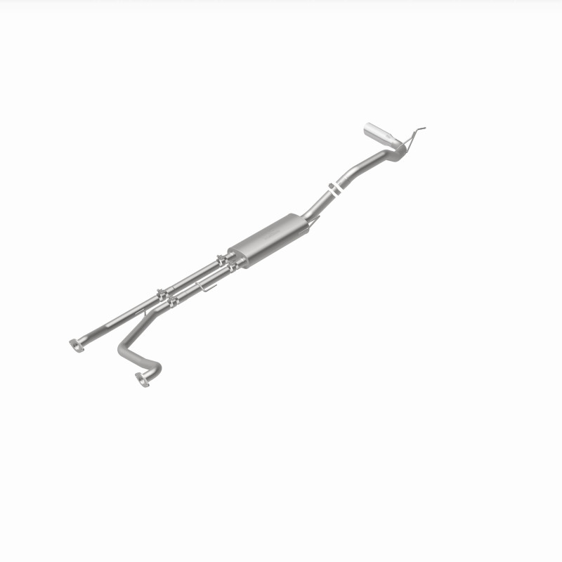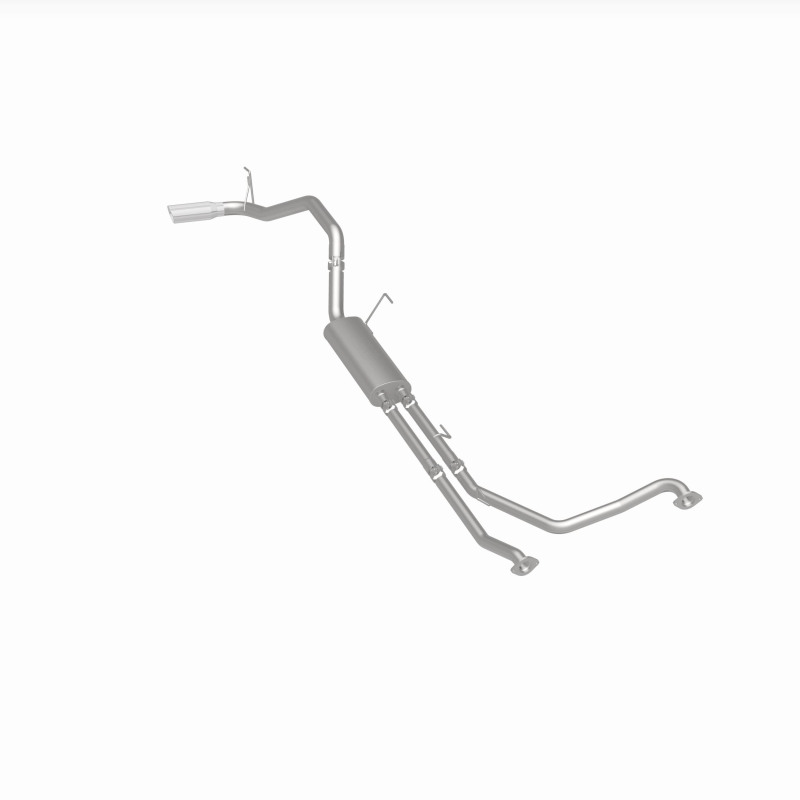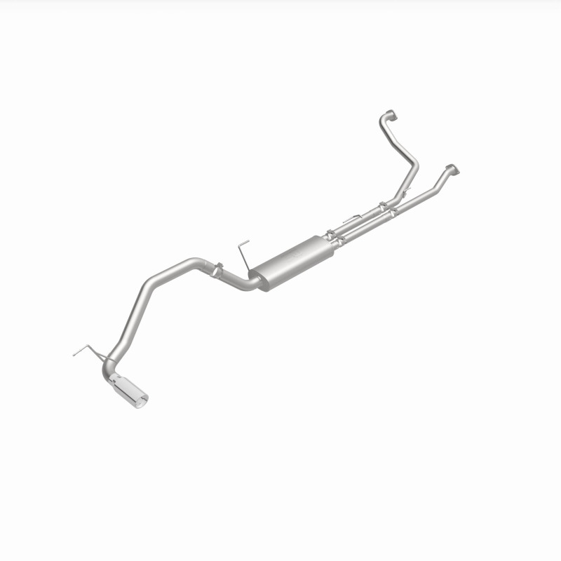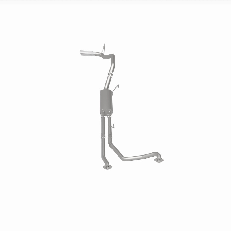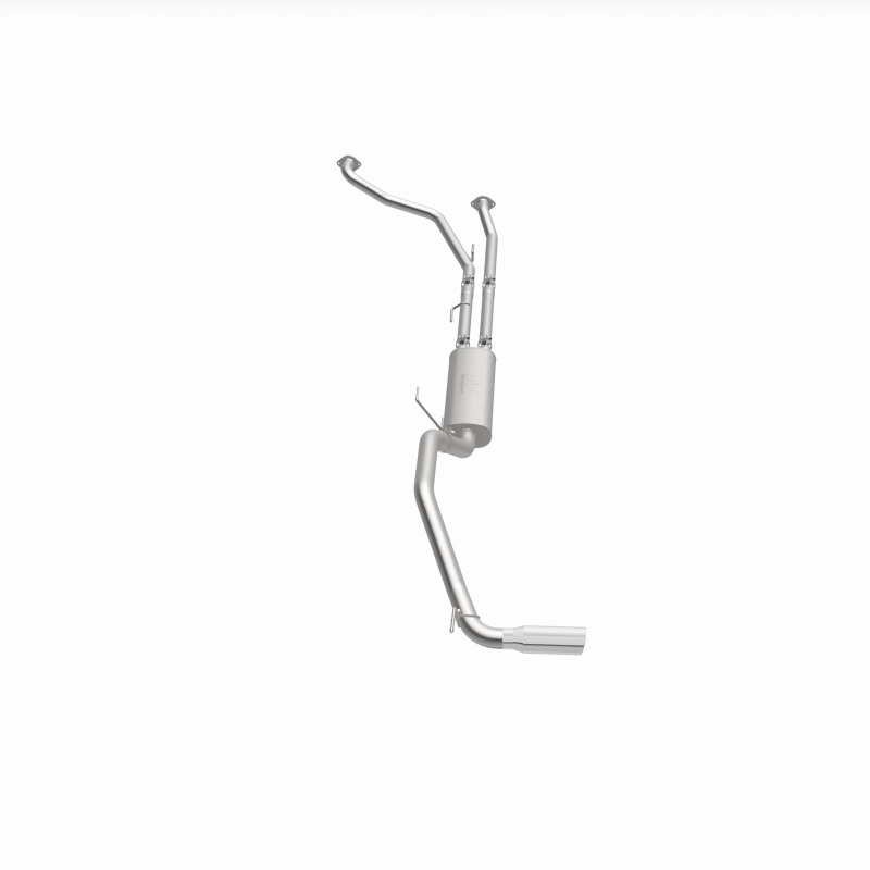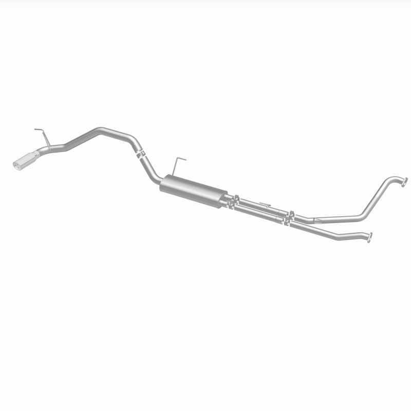 The MagnaFlow 2007-2024 Nissan TITAN Street Series Cat-Back Performance Exhaust System 19421 brings out the personality of your 5.6L 2007-2023 Nissan TITAN with our signature resonant, powerful engine tone and dyno-proven performance. Thanks to its fast-flowing, mandrel bent 3in. main piping and 1 Straight-Through mufflers ending in a Single Passenger Side Rear exit with 4in. Polished Welded-On Double Wall Angle Cut Rolled Edge tips, this Nissan TITAN exhaust kit has the performance chops to match its sporty sound and appearance. Upgrade your ride to the next level with an exhaust that has the pipes to put other Nissan TITAN's to shame. With this system your vehicle will be producing Moderate exterior and Mild interior sound levels while leaving other cars and trucks feeling envious at every stoplight. Exhaust kit 19421 features a cat-back layout that replaces your ride's stock exhaust components from near the catalytic converter on back. Extensive 3D scanning during development has resulted in a direct-fit design that you can easily install yourself. 19421 is produced using CNC precision robotic manufacturing techniques and is backed by MagnaFlow's 1-year limited finish warranty and limited lifetime construction warranty.