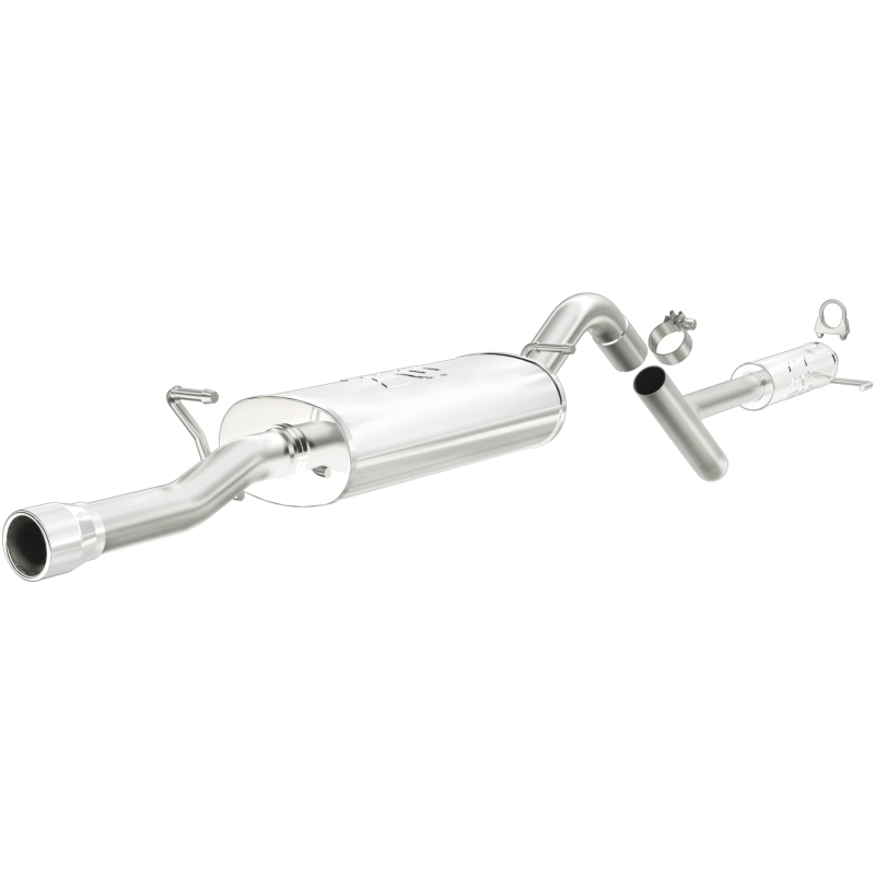 The MagnaFlow 2003-2006 Toyota Corolla Street Series Cat-Back Performance Exhaust System 15807 brings out the personality of your 1.8L 2003-2006 Toyota Corolla with our signature resonant, powerful engine tone and dyno-proven performance. Thanks to its fast-flowing, mandrel bent 2.25in. main piping and 2 Straight-Through mufflers ending in a Single Straight Passenger Side Rear exit with 3in. Polished Welded-On Single Wall Straight Cut Rolled Edge tips, this Toyota Corolla exhaust kit has the performance chops to match its sporty sound and appearance. Upgrade your ride to the next level with an exhaust that has the pipes to put other Toyota Corolla's to shame. With this system your vehicle will be producing Moderate exterior and Mild interior sound levels while leaving other cars and trucks feeling envious at every stoplight. Exhaust kit 15807 features a cat-back layout that replaces your ride's stock exhaust components from near the catalytic converter on back. Extensive 3D scanning during development has resulted in a direct-fit design that you can easily install yourself. 15807 is produced using CNC precision robotic manufacturing techniques and is backed by MagnaFlow's 1-year limited finish warranty and limited lifetime construction warranty.