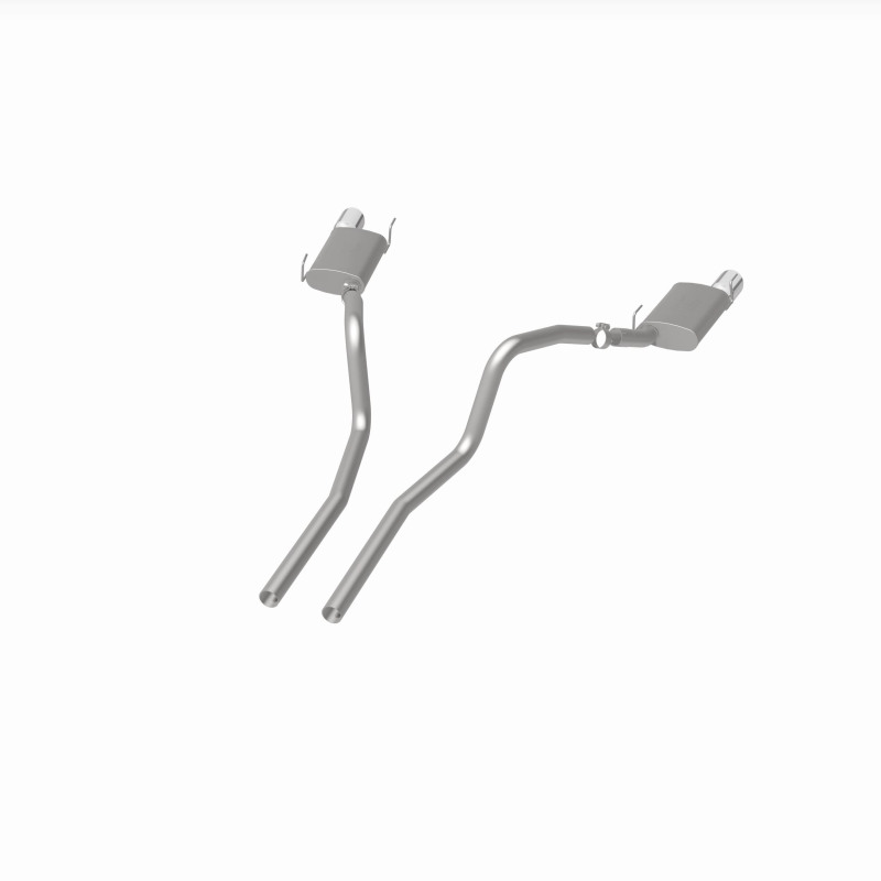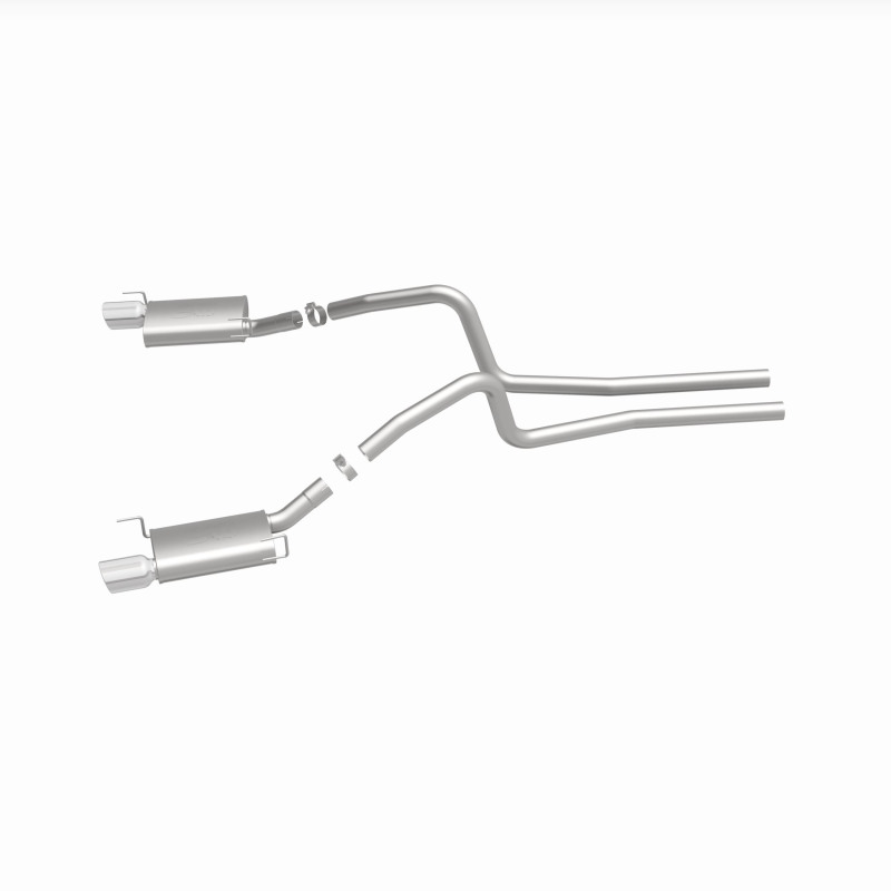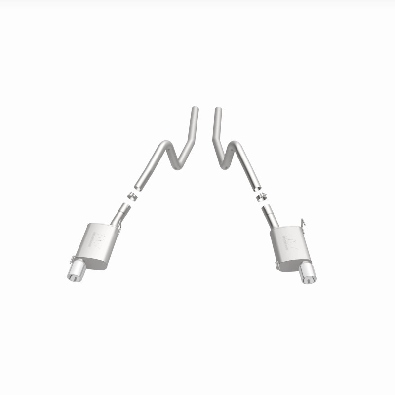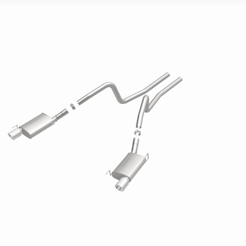 The MagnaFlow 2005-2009 Ford Mustang Street Series Cat-Back Performance Exhaust System 15881 brings out the personality of your 4.6L, 5.4L 2005-2009 Ford Mustang with our signature resonant, powerful engine tone and dyno-proven performance. Thanks to its fast-flowing, mandrel bent 2.5in. main piping and 2 Straight-Through mufflers ending in a Dual Split Rear exit with 4in. Polished Welded-On Double Wall Angle Cut Rolled Edge tips, this Ford Mustang exhaust kit has the performance chops to match its sporty sound and appearance. Upgrade your ride to the next level with an exhaust that has the pipes to put other Ford Mustang's to shame. With this system your vehicle will be producing Moderate exterior and Mild interior sound levels while leaving other cars and trucks feeling envious at every stoplight. Exhaust kit 15881 features a cat-back layout that replaces your ride's stock exhaust components from near the catalytic converter on back. Extensive 3D scanning during development has resulted in a direct-fit design that you can easily install yourself. 15881 is produced using CNC precision robotic manufacturing techniques and is backed by MagnaFlow's 1-year limited finish warranty and limited lifetime construction warranty.