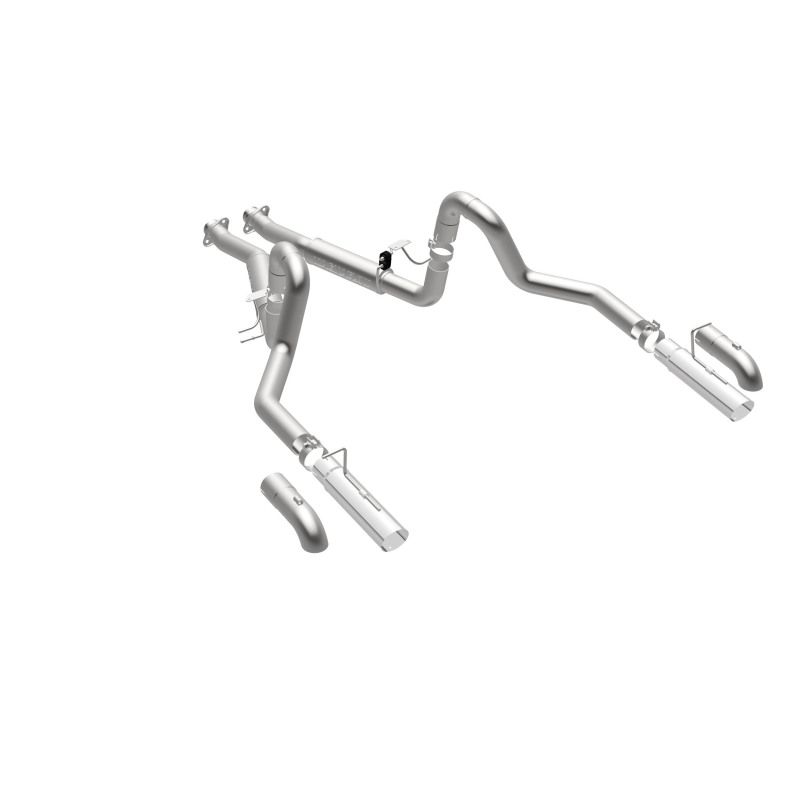 The MagnaFlow 1987-1993 Ford Mustang Competition Series Cat-Back Performance Exhaust System 16996 brings an aggressive, attention-grabbing edge to the deep resonant exhaust note we're so well known for. This exhaust kit is designed to enhance your 5.0L 1987-1993 Ford Mustang with dyno-proven performance made possible thanks to fast-flowing mandrel bent 3in. main piping and 2 Straight-Through mufflers ending in a Dual Split Rear exit with 3 x 3.5in. Polished Clamp-On Single Wall Straight Cut Cut Edge tips featuring a sporty finish. The exhaust system's cat-back layout replaces your ride's exhaust system from near the catalytic converter on back. Exhaust system 16996 is engineered to make your vehicle's engine produce Aggressive exterior and Moderate interior sound levels, befitting its competition-oriented design. 16996's direct-fit design makes installation a breeze thanks to the use of advanced 3D scanning techniques. This performance exhaust system is made of 100% durable and corrosion-resistant stainless steel and produced using CNC precision robotic manufacturing, all backed by MagnaFlow's limited lifetime warranty. Please check to ensure compliance with local noise regulations.