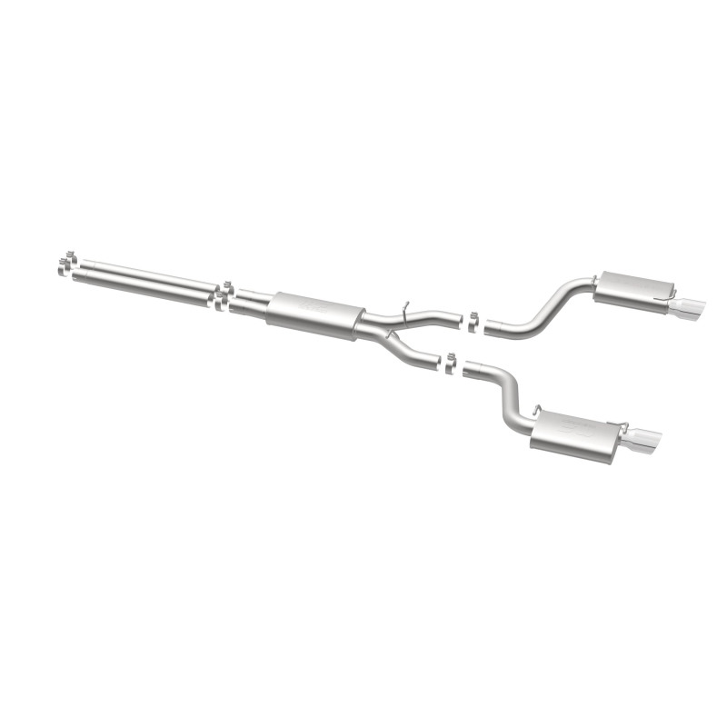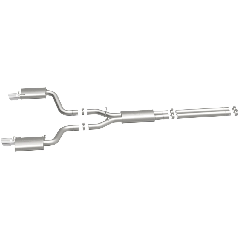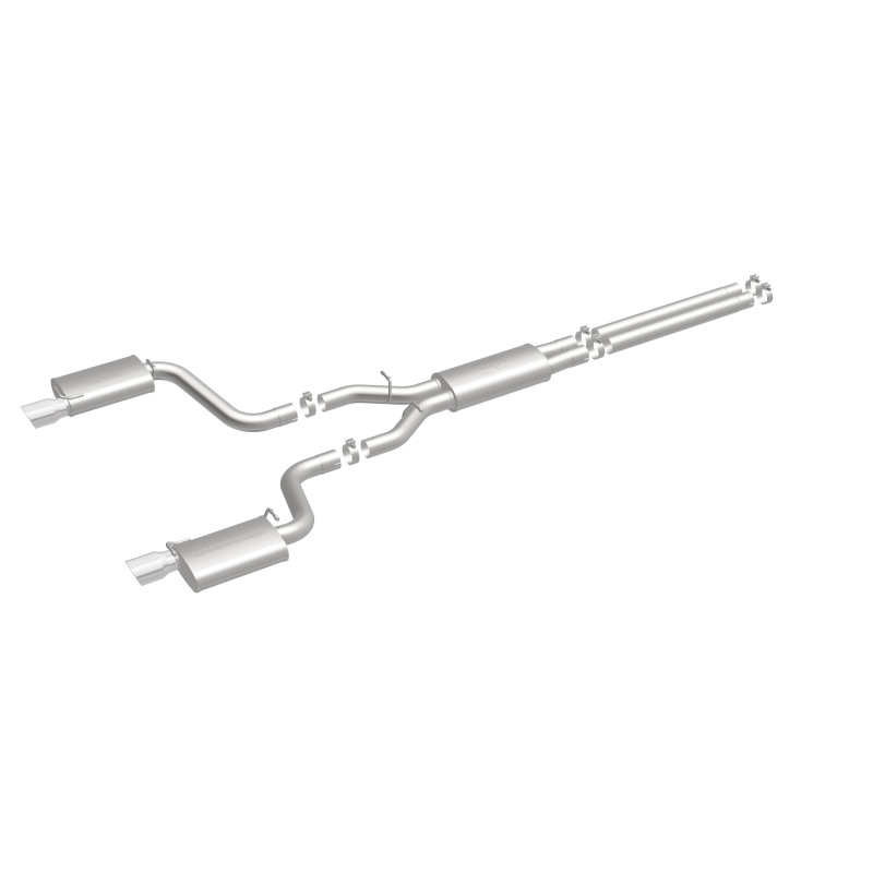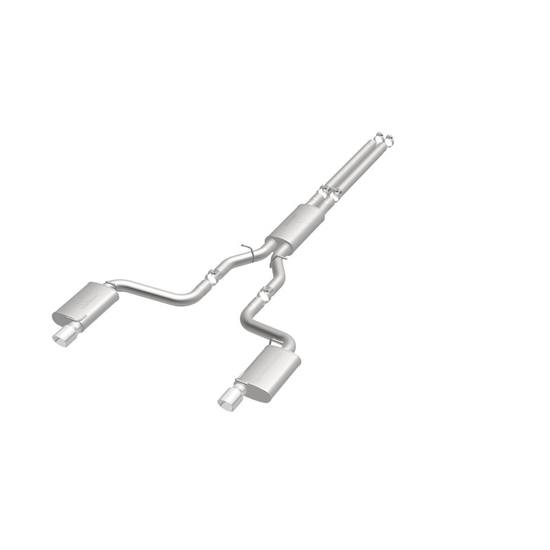 The MagnaFlow Street Series Cat-Back Performance Exhaust System 16642 brings out the personality of your Car with our signature resonant, powerful engine tone and dyno-proven performance. Thanks to its fast-flowing, mandrel bent 3in. main piping and 3 Straight-Through mufflers ending in a Dual Split Rear exit with 4in. Polished Welded-On Double Wall Angle Cut Folded Edge tips, this Car exhaust kit has the performance chops to match its sporty sound and appearance. Upgrade your ride to the next level with an exhaust that has the pipes to put other Car's to shame. With this system your vehicle will be producing Moderate exterior and Mild interior sound levels while leaving other cars and trucks feeling envious at every stoplight. Exhaust kit 16642 features a cat-back layout that replaces your ride's stock exhaust components from near the catalytic converter on back. Extensive 3D scanning during development has resulted in a direct-fit design that you can easily install yourself. 16642 is produced using CNC precision robotic manufacturing techniques and is backed by MagnaFlow's 1-year limited finish warranty and limited lifetime construction warranty.