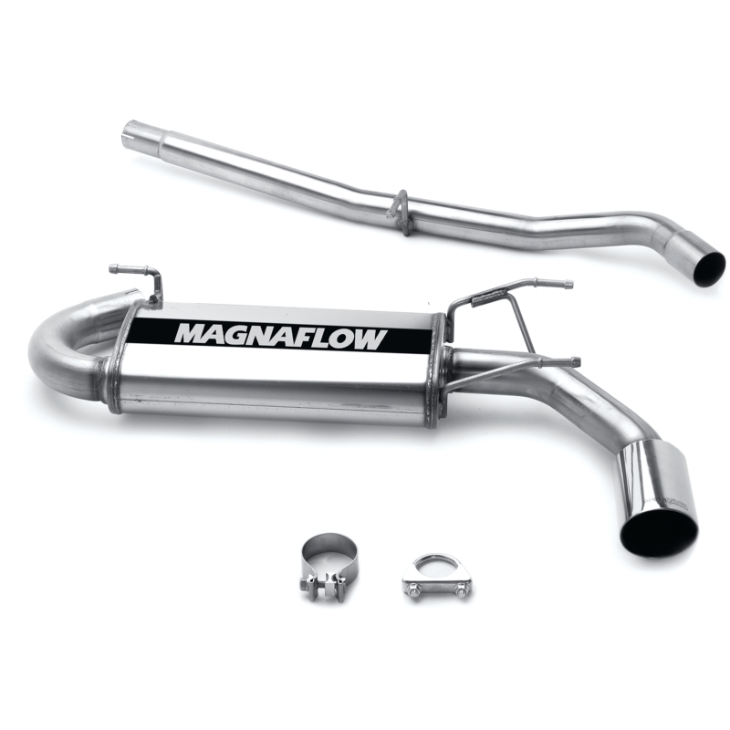 The MagnaFlow 1999-2005 Mazda Miata Street Series Cat-Back Performance Exhaust System 16638 brings out the personality of your 1.8L 1999-2005 Mazda Miata with our signature resonant, powerful engine tone and dyno-proven performance. Thanks to its fast-flowing, mandrel bent 2.5in. main piping and 1 Straight-Through mufflers ending in a Single Straight Passenger Side Rear exit with 4in. Polished Welded-On Double Wall Angle Cut Folded Edge tips, this Mazda Miata exhaust kit has the performance chops to match its sporty sound and appearance. Upgrade your ride to the next level with an exhaust that has the pipes to put other Mazda Miata's to shame. With this system your vehicle will be producing Moderate exterior and Mild interior sound levels while leaving other cars and trucks feeling envious at every stoplight. Exhaust kit 16638 features a cat-back layout that replaces your ride's stock exhaust components from near the catalytic converter on back. Extensive 3D scanning during development has resulted in a direct-fit design that you can easily install yourself. 16638 is produced using CNC precision robotic manufacturing techniques and is backed by MagnaFlow's 1-year limited finish warranty and limited lifetime construction warranty.