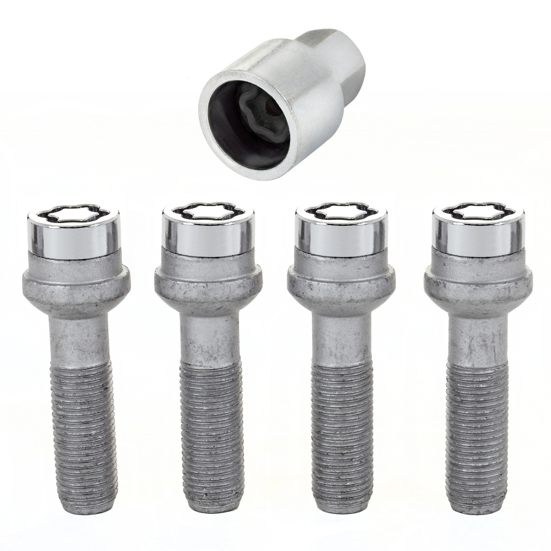 McGard Wheel Lock Bolt Set - 4pk. (Radius Seat) M14X1.5 / 17mm Hex / 45.0mm Shank Length - Chrome - 28017