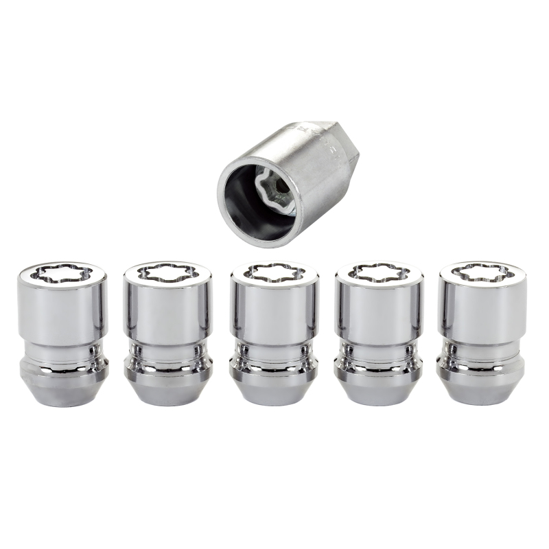 Protecting the world's finest wheels and tires from theft since 1964.; McGard manufactures wheel locks in the USA to meet or exceed O.E.M.; standards for safety and durability.; Presently, McGard is an Original Equipment wheel lock supplier to most automobile brands around the world.; These easy-to-use, one-piece wheel locks function like regular lug nuts, but require a special key tool for installation and removal.; The steel collar on the user friendly key guides the key into the lock pattern.; The collar holds the key in alignment for easy installation and removal.; The computer generated key designs allow for an infinite number of key patterns.; The extra narrow pattern groove on the lock resists the intrusion of removal tools into the pattern.; Every McGard wheel lock is fully machined from restricted chemistry steel made specifically for McGard and through-hardened for its unsurpassed level of security.; McGard's plating process includes several layers of nickel and one layer of microporous chrome producing a superior finish while protecting against rust.; For use on sport/utility vehicles with O.E.M.; rear mount spare tire carrier.; One lock for spare, four locks for road wheels, one matching key.; This product may contain globally sourced materials/components.