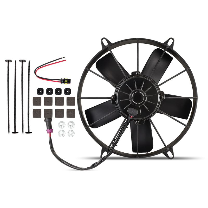 Provide your radiator with the maximum amount of airflow with our new 11" Race Line fan. Our Race Line fans were designed for heavy-duty applications where a Slim Line fan just won't cut it. However, this robust fan is still thin enough to fit between your engine and radiator in most applications and provides 1700 CFM of airflow to cool the largest and most powerful of engines! Depending on your application, this fan can also be reversed and used in front of your radiator. For universal installation, use the Mishimoto Electric Fan Mounting Kit.