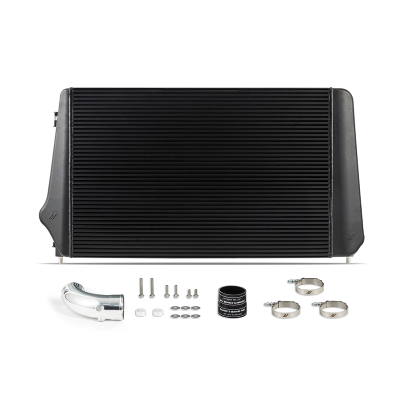 Mishimoto has expanded our line of Duramax performance parts to include a performance intercooler for the 2017-2019 Chevrolet/GMC 6.6L Duramax L5P.High intake temperatures can reduce performance and potentially cause engine damage if left unchecked. Protect your investment by upgrading to the Mishimoto 6.6L Duramax L5P performance intercooler. This Duramax intercooler is precision engineered with durable cast-aluminum end tanks that resist cracking under high temperatures and boost pressures.The massive 68mm-thick bar-and-plate core is 70-percent thicker than stock and is designed for maximum cooling. In addition, the larger core reduces restriction by over 64-percent compared to the stock intercooler. We've also increased the size of the intercooler inlet and outlet by 6mm and 12mm, respectively, to improve flow even more.Included with this intercooler is an adapter cold-side pipe with DuraCore™ boot and constant-tension T-bolt clamps. Two additional bungs on the adapter pipe can be drilled and tapped for sensors or water/meth injection. Offered in Sleek Silver or Stealth Black powder-coated finish, the Mishimoto 6.6L Duramax intercooler, like all our Duramax performance parts, is protected by our signature Mishimoto Lifetime Warranty.