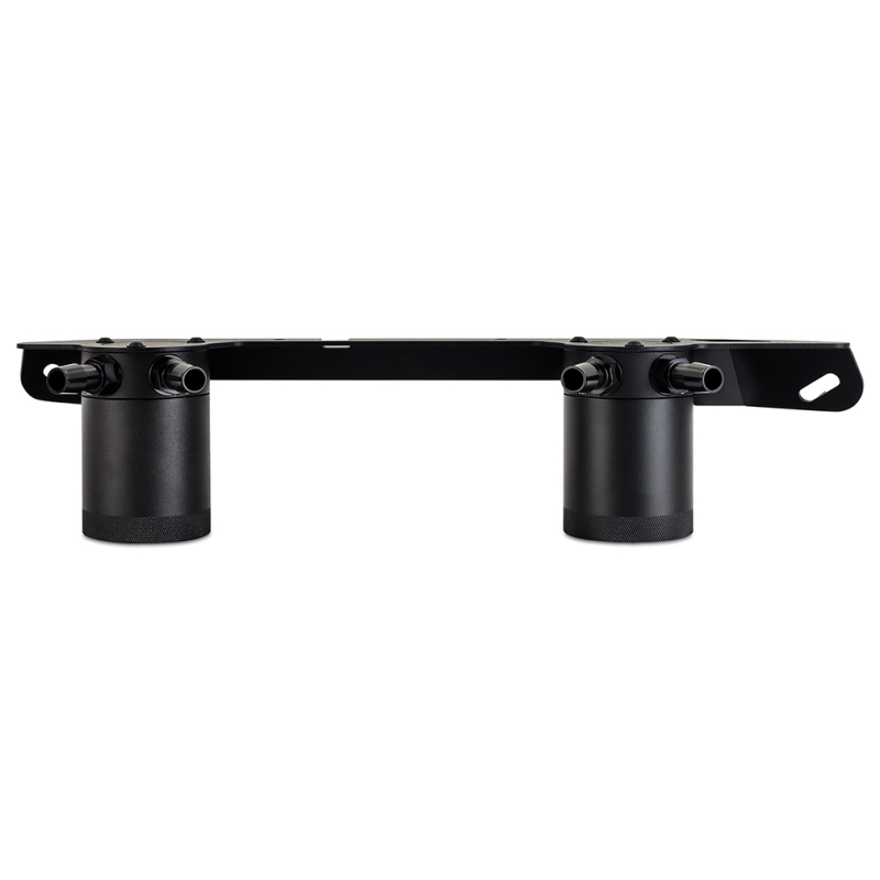 The legendary Ford Bronco has returned, and under the retro-styled hood lies a new legend: the 2.7L EcoBoost. The 2.7L EcoBoost has been powering Fords for nearly a decade and has become one of the most respected truck engines available. The second generation 2.7L features both port and direct injection for efficiency throughout the RPM range. While the added port injection helps clean the intake valves, it doesn't protect the rest of your engine from the effects of blow-by. As blow-by flows through your intake, it coats components like sensors and your intercooler in a sludge of oil, carbon, and fuel, reducing their ability to function. Blow-by can also reduce the effectiveness of your engine oil. The factory air-oil-separator drains blow-by back into the oil pan, which is great for the environment, but the fuel and water in blow-by can thin your engine oil and reduce its viscosity. Finally, any blow-by that does make its way back into the cylinder can reduce the octane of your fuel and, for a high-strung turbocharged engine like the 2.7L EcoBoost, lower octane means less power. The solution to all those issues is to capture the blow-by and keep it out of the engine with a Mishimoto catch can system. Our direct-fit baffled oil catch can system for the 2021+ Ford Bronco 2.7L EcoBoost intercepts blow-by before it enters the intake and captures it to be recycled at your next oil change. This dual catch can system provides efficient oil/water separation for both the PCV and CCV systems on your Bronco. Our catch cans feature an internal baffle and air turbulators that help condense oil, fuel, and water vapor from the blow-by, as well as a 50-micron sintered silver filter that captures carbon particles. Our catch can system features a sturdy 2.5mm-thick steel bracket and molded hoses which include Ford-specific quick-disconnect fittings for an easy and clean install. This catch can system is backed by our Mishimoto Lifetime Warranty for a lifetime of clean running.