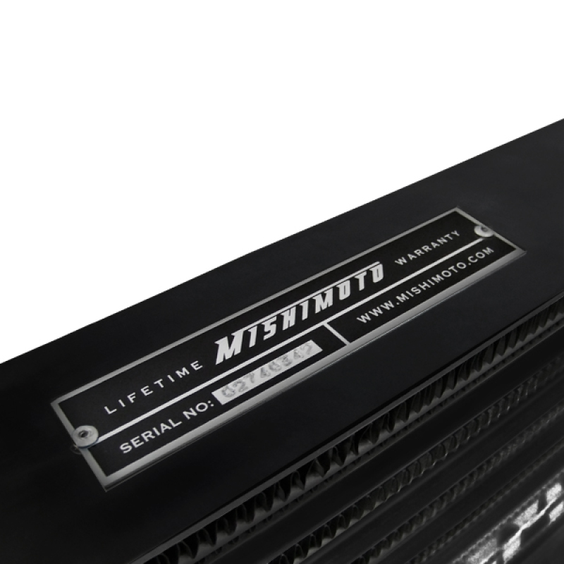 Sleek and stylish, this universal front-mount intercooler will provide the perfect cooling capacity needed for smaller turbo applications.All Mishimoto intercoolers are constructed of 6061 aluminum and are TIG welded to perfection.Coated all-black finish gives this intercooler a sleeper look when mounted.Note: For your taste, only one side of the intercooler has the Mishimoto logo.