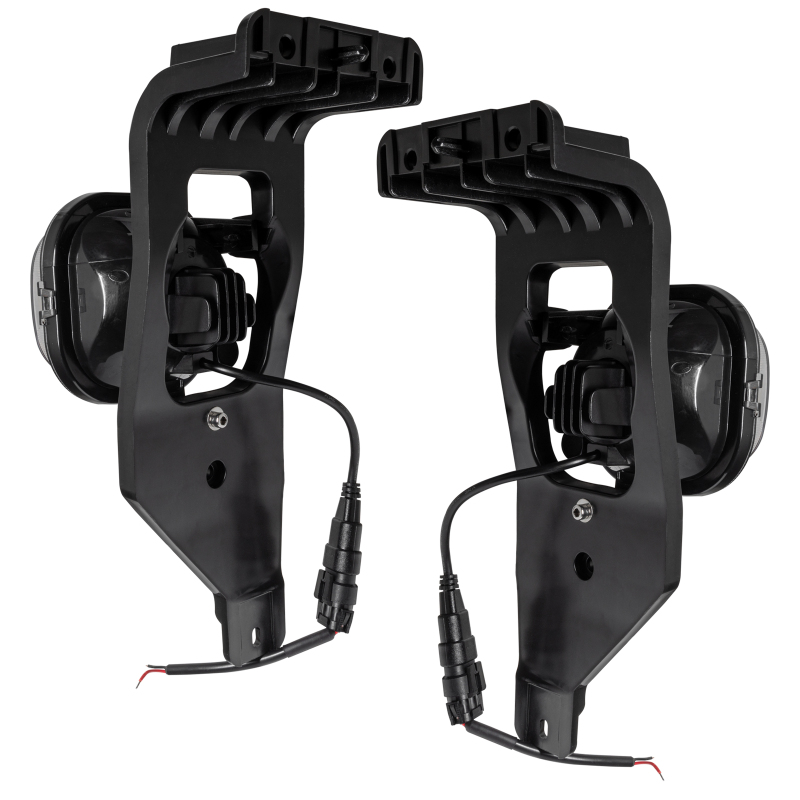 This is a pair of direct-replacement High-Performance LED Fog Lights for the 2005-2007 Ford Superduty truck applications. These direct-fit fog lights feature factory mounting and plug-and-play wiring connections for easy, trouble-free installation. These amazing LED units push out approximately 1500 lumens which will vividly light up the road while only drawing 15W of power per light. The new rugged solid-state LED design can operate in the worst possible conditions. Each light utilizes a durable PMMA lens and Polycarbonate lamp housing to withstand impact. The solid-state LED emitters withstand the worst shock and vibration while the epoxy-sealed electronics prevent moisture and corrosion. The aggressive blacked-out look gives your vehicle a modernized appearance and improves night-time visibility at the same time.